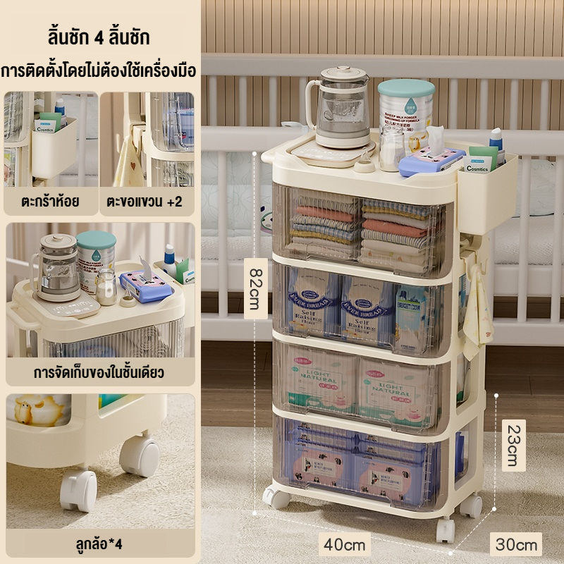 baby safety☁️ชั้นวางของ มีล้อลาก ลิ้นชักพลาสติกใส เซตชั้นเก็บของอเนกประสงค์ 2/3/4 ชั้น สำหรับเด็ก