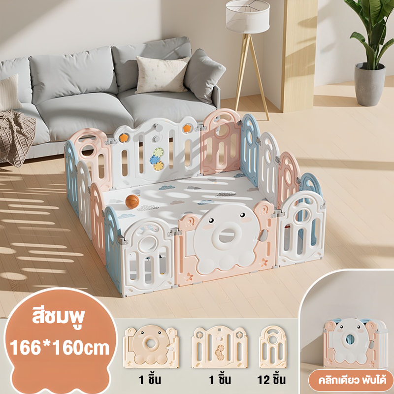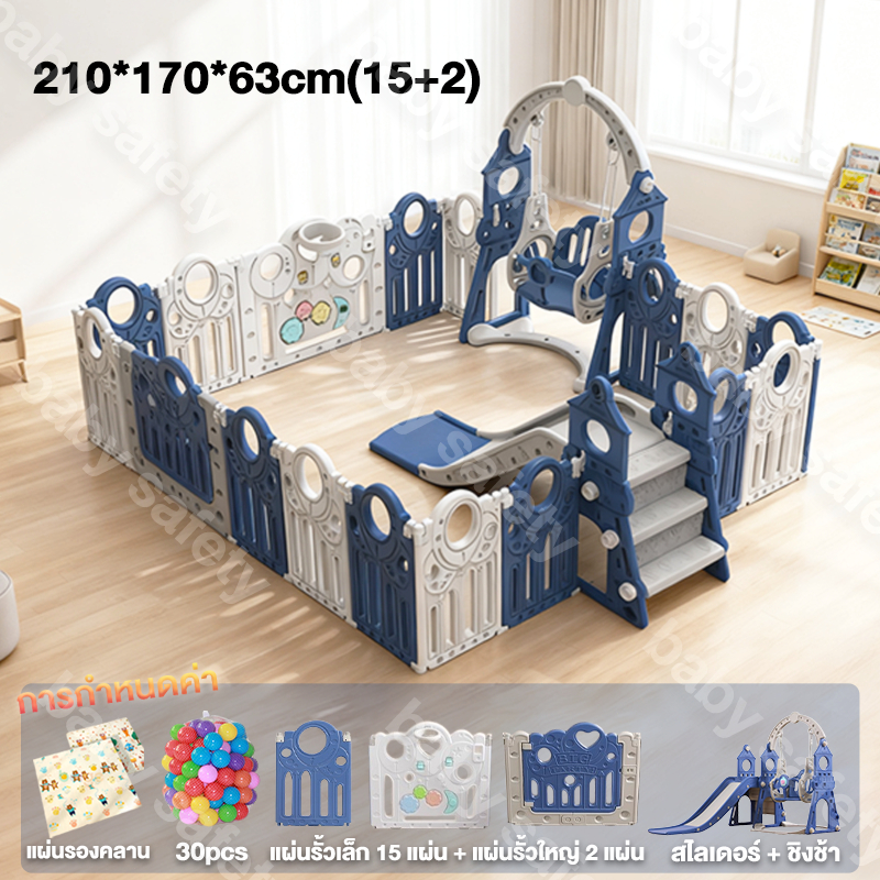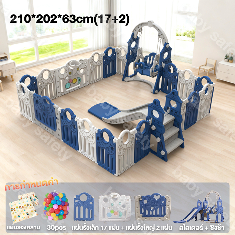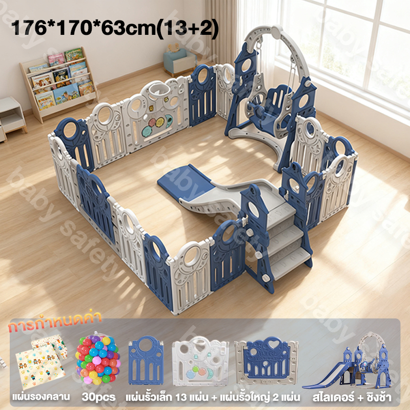 baby safety☁️ คอกกั้นเด็ก รั้วเด็กพับได้ พับได้ ปรับได้หลายทรง พร้อมสไลเดอร์+สวิง+เสื่อคลาน+30ball