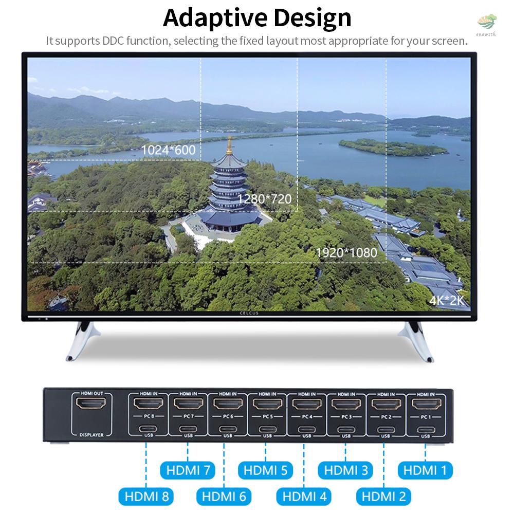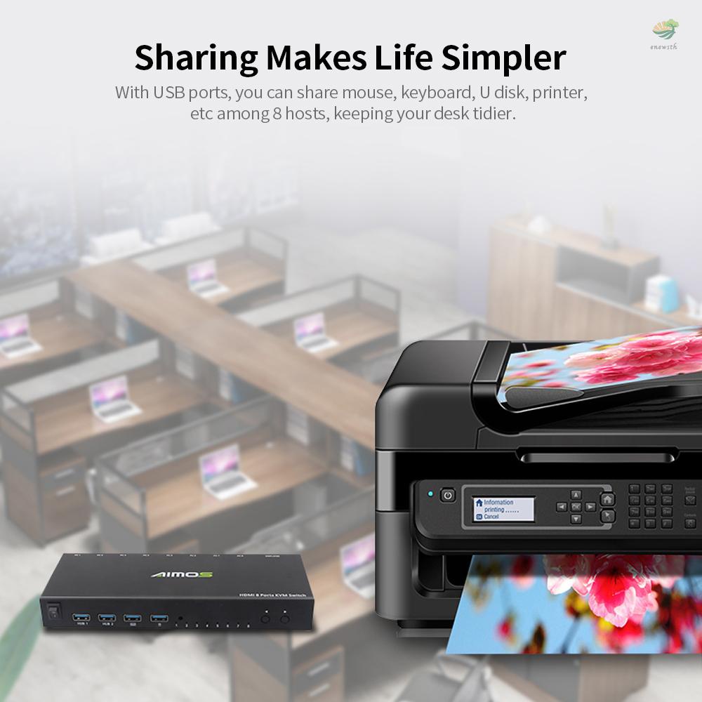 Aimos 8 in 1 สวิตช์ HDMI KVM แชร์จอภาพ คีย์บอร์ด เมาส์ เครื่องพิมพ์ among 8 Hosts 4K@30Hz เสียง และเอาท์พุตซิงค์วิดีโอ สีดํา