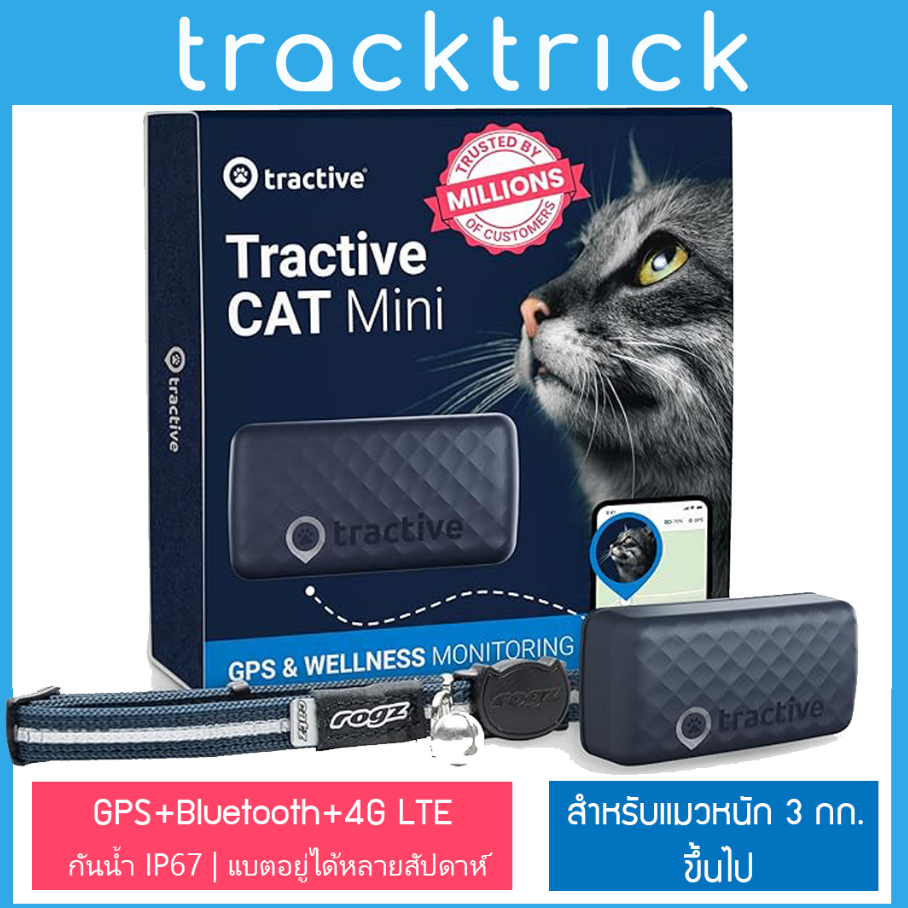 Tractive GPS Cat Mini ปลอกคอ GPS 4G สำหรับแมว ไม่จำกัดระยะ กันน้ำ IP67 แบตอยู่ได้ 7 วัน - TrackTrick