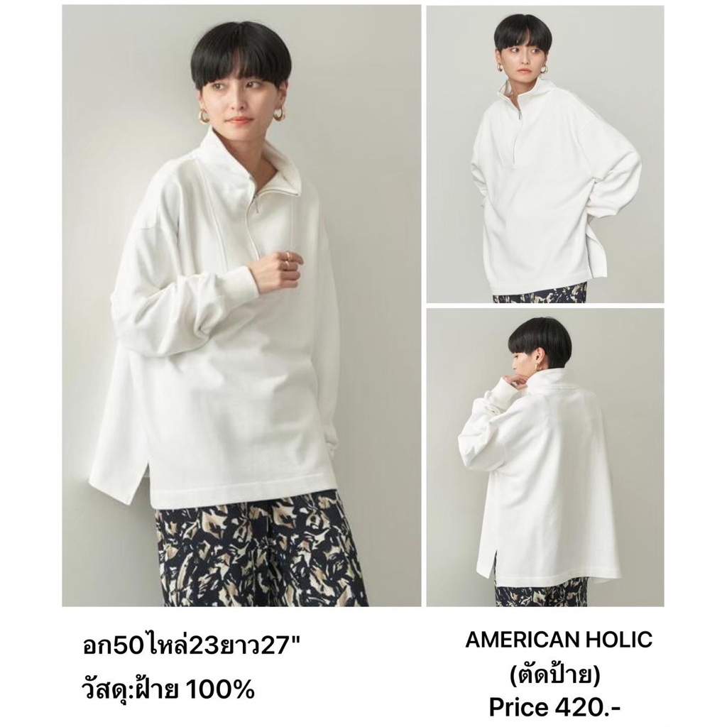 แบรนด์:AMERICAN HOLIC เสื้อทูนิคแบบมีซิปครึ่งตัว แบรนด์ญี่ปุ่นมือ1แท้💯