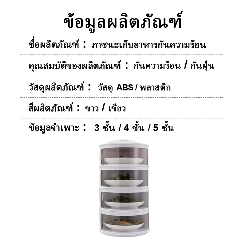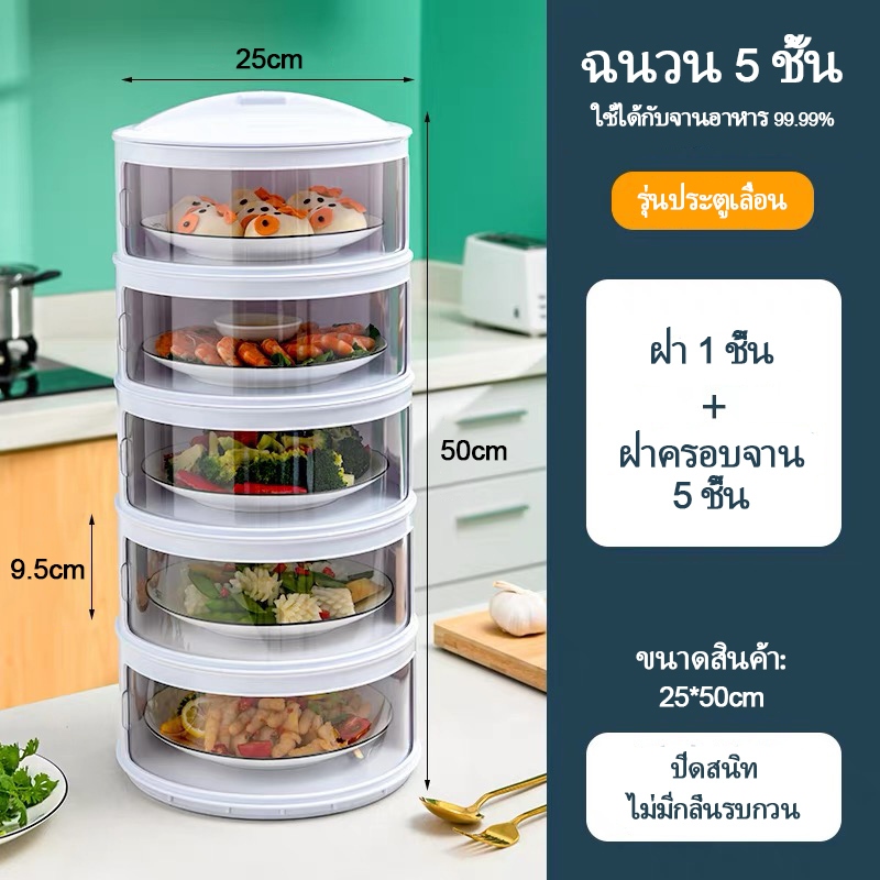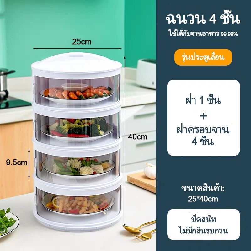 เก็บอาหาร ฝาครอบอาหาร 3/4/5 ชั้นเก็บอุณหภูมิ ชั้นวางอาหาร สไลด์เปิด-ปิด ป้องกันเชื้อโรค กันแมลง ถนอมอาหาร ชั้นเก็บอาหาร