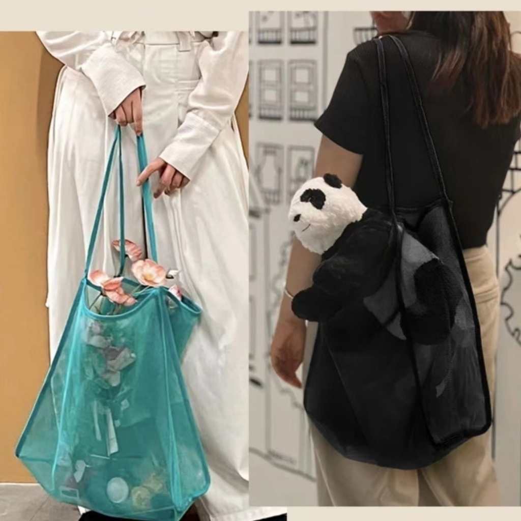 ห้างสรรพสินค้ากระเป๋าช้อปปิ้งตาข่ายโปร่งใสกระเป๋าเก็บกระเป๋าสะพายความจุขนาดใหญ่ ทั้งหมด-จับคู่ กระเป๋าช้อปปิ้งกระเป๋าชายหาดพับกลวงถุงเก็บ