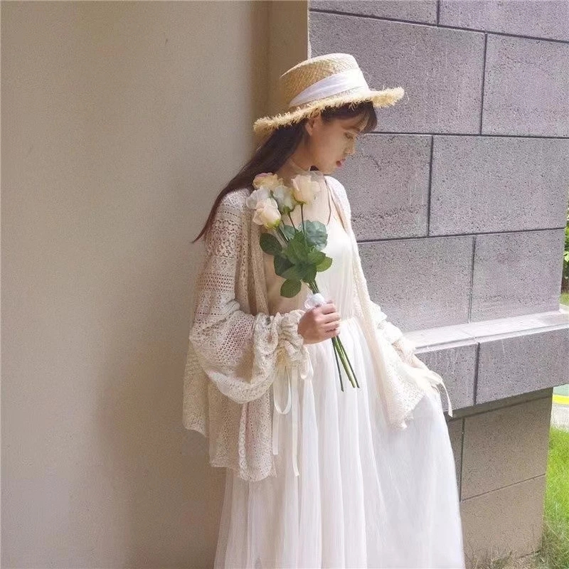 เกาหลี ผู้หญิงแฟชั่นเสื้อสเวตเตอร์ถักแขนยาวหลวมย้อนยุค