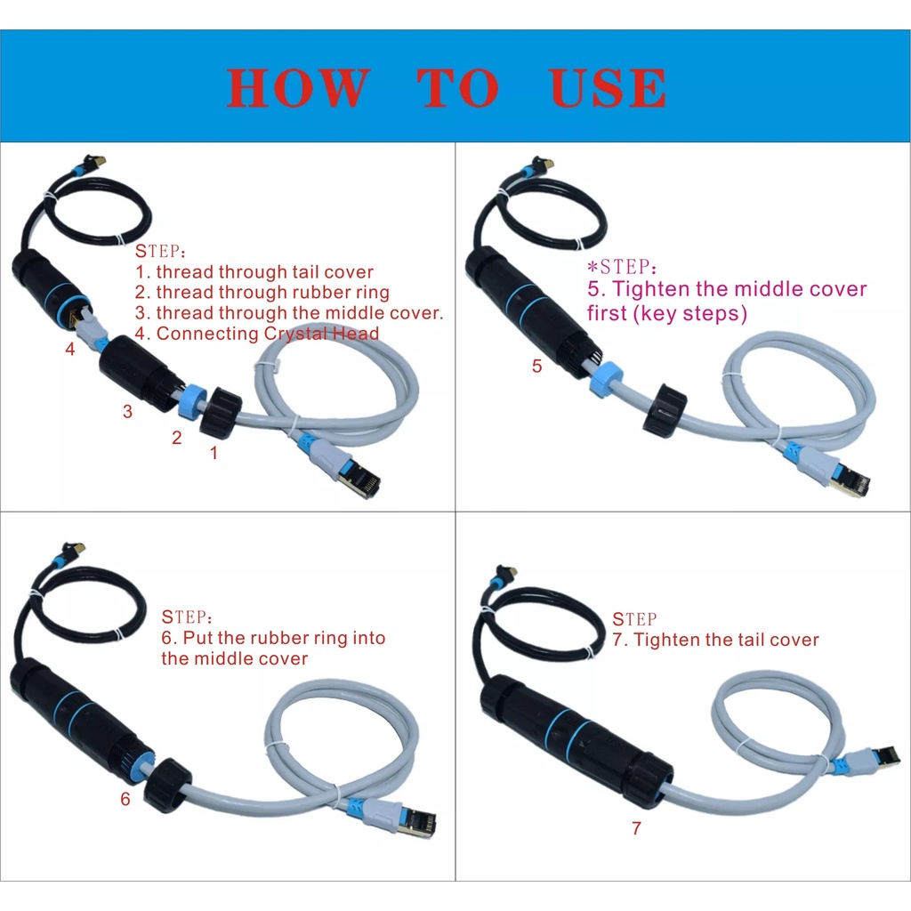 Ethernet LAN CAT6A ป้องกัน IP68 M23 RJ45 กันน้ํา Connector RJ 45 หญิงสายเคเบิลเครือข่ายอะแดปเตอร์ขยาย