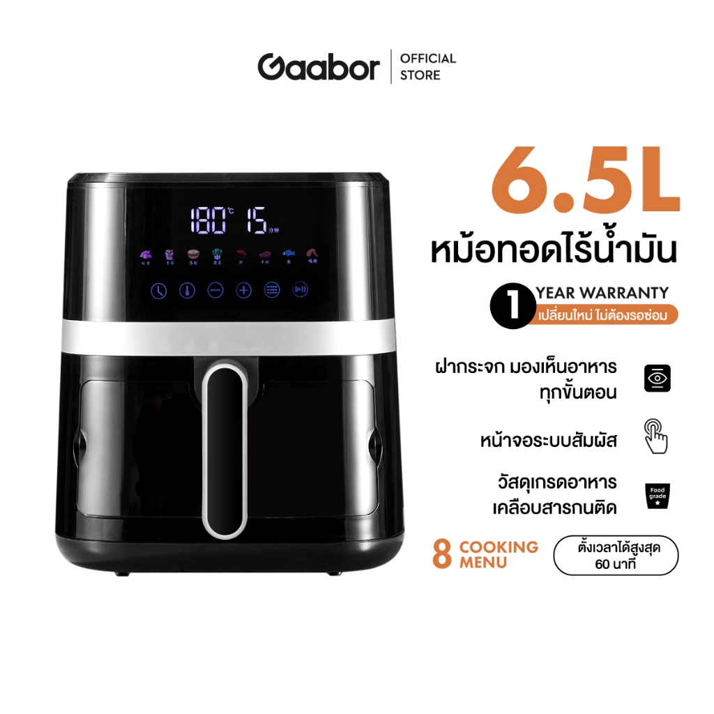 [รุ่นTop] Gaabor Air Fryer 6.5 ลิตร 1500W หม้อทอดไร้น้ำมัน หม้อทอดไร้น้ำมันเอนกประสงค์แบบมั AF65T-BK01A