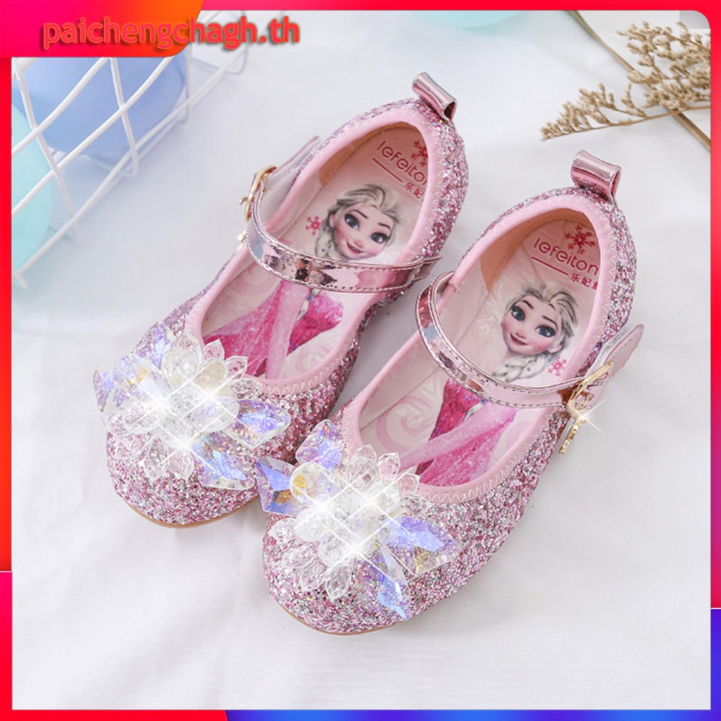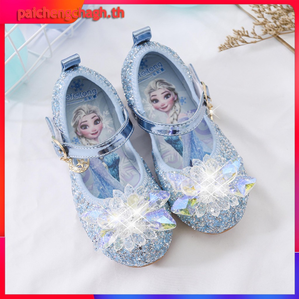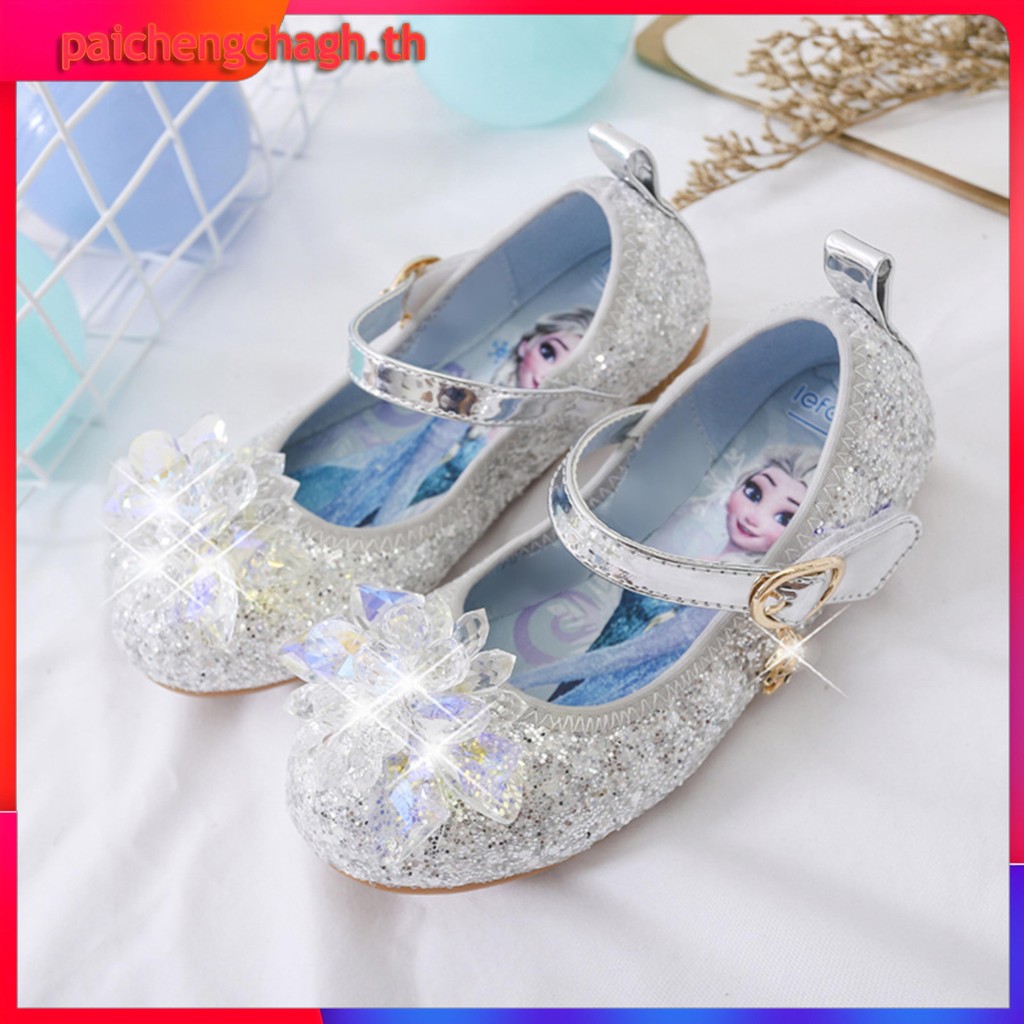 YA ZHOU LONG แฟชั่นรองเท้าแก้วเจ้าหญิงเอลซ่า รองเท้าส้นแบนของสาวๆ สวมใส่สบาย อ่อนนุ่ม