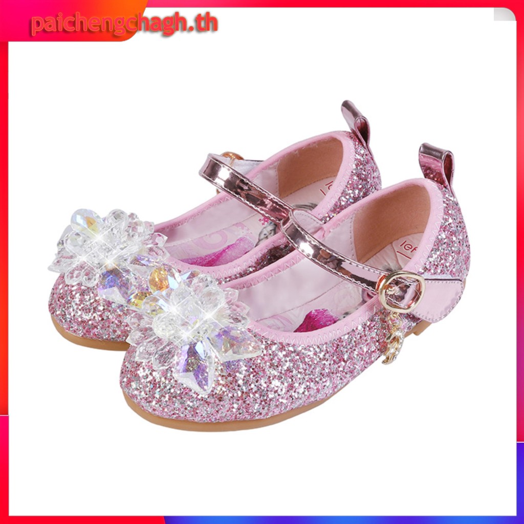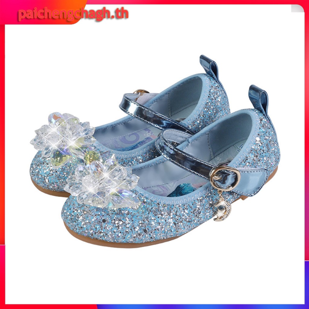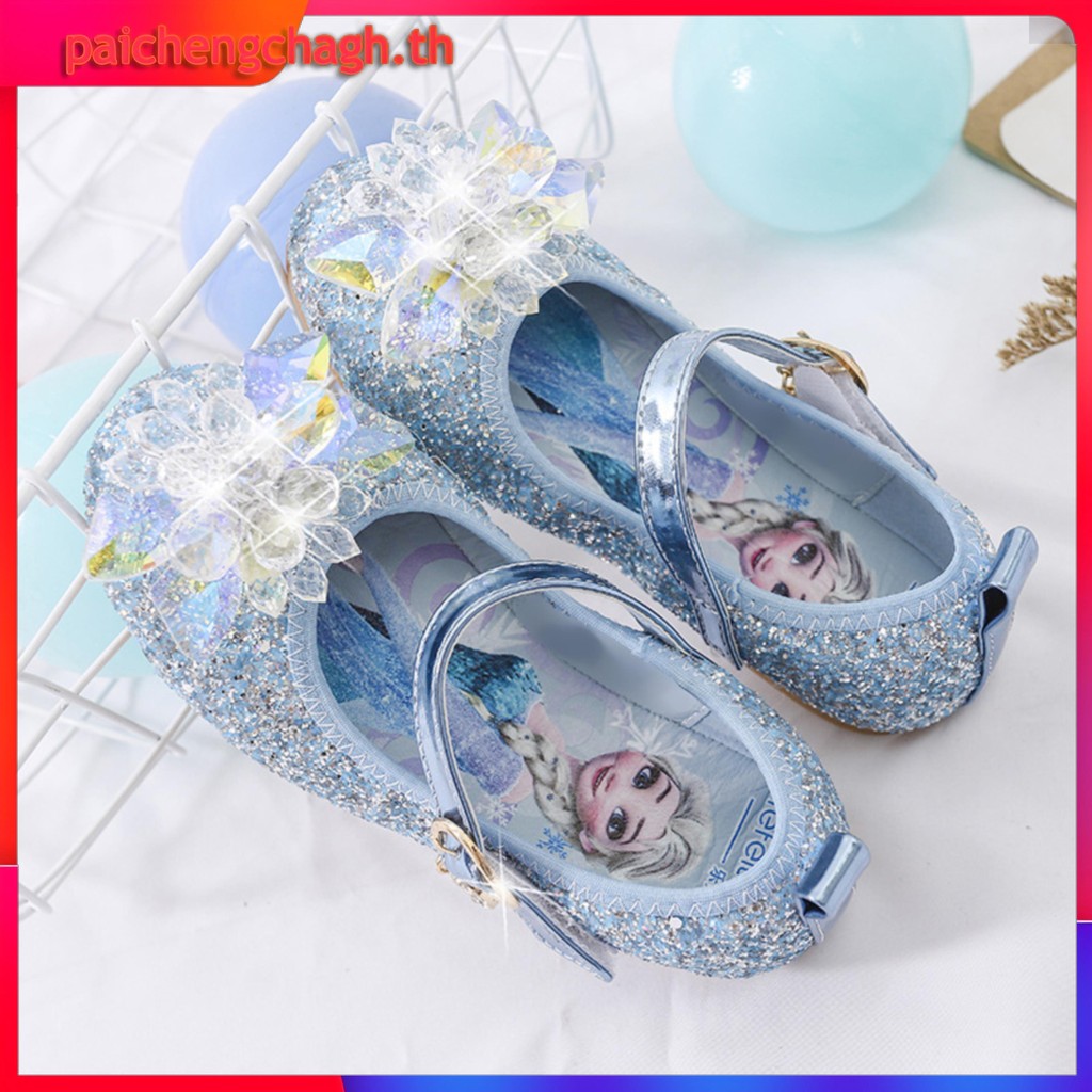 YA ZHOU LONG แฟชั่นรองเท้าแก้วเจ้าหญิงเอลซ่า รองเท้าส้นแบนของสาวๆ สวมใส่สบาย อ่อนนุ่ม