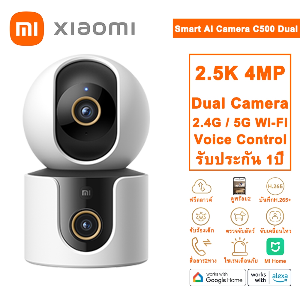 Xiaomi Smart Ai Camera C500 Dual 2.5K ฟรีคลาวด์บันทึก กล้องวงจรปิด wifi 5g/2.4g 2กล้องดูพร้อมกัน Ai Google Assistant