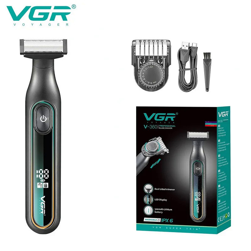 VGR เครื่องโกนหนวดกันน้ําในครัวเรือนแบบชาร์จไฟได้ปรับไฟฟ้ามีดโกน LED Full Body Washable ลูกสูบเครื่องโกนหนวดชาย V-360