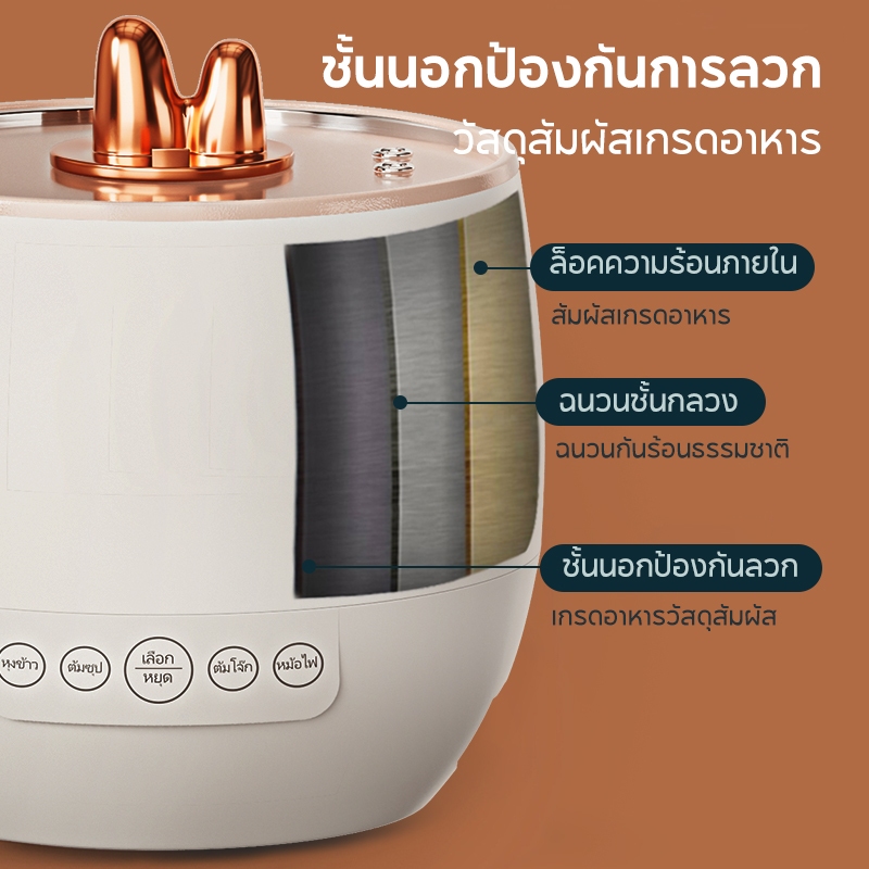 หม้อหุงข้าว 1.8 ลิตร หม้อหุงข้าวอัจฉริยะ 1-3คน ไม่ติดหม้อ 400W หม้อหุงข้าวมัลติฟังก์ชั่น 4 ฟังก์ชั่น