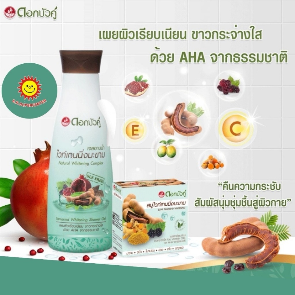 (ซื้อ1แถม1)ดอกบัวคู่ เจลอาบน้ำ ไวท์เทนนิ่งมะขาม 200มล.