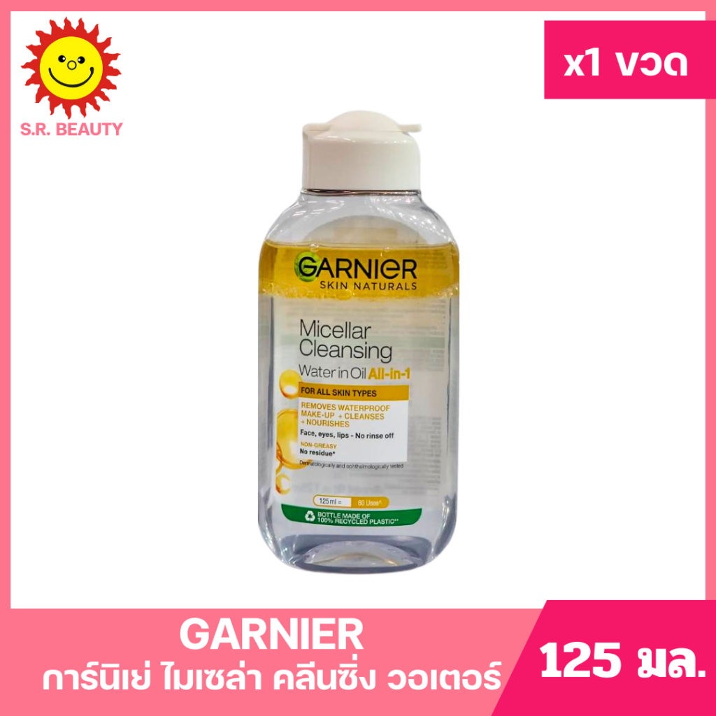 [ 1ขวด ] Garnier การ์นิเย่ สกิน แนทเชอรัลส์ ไมเซล่า คลีนซิ่ง วอเตอร์ ขนาด 125 มล. (1ขวด) มี 4 สูตร
