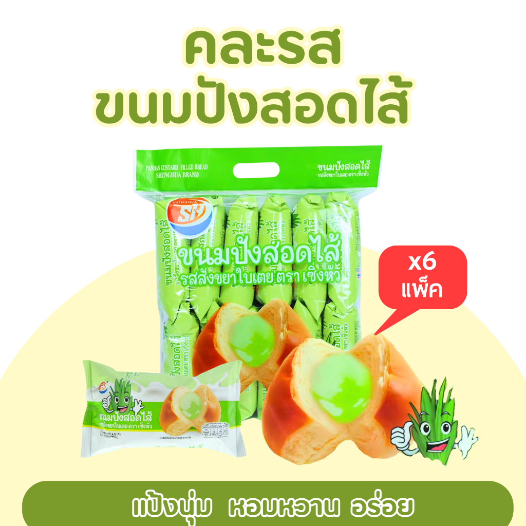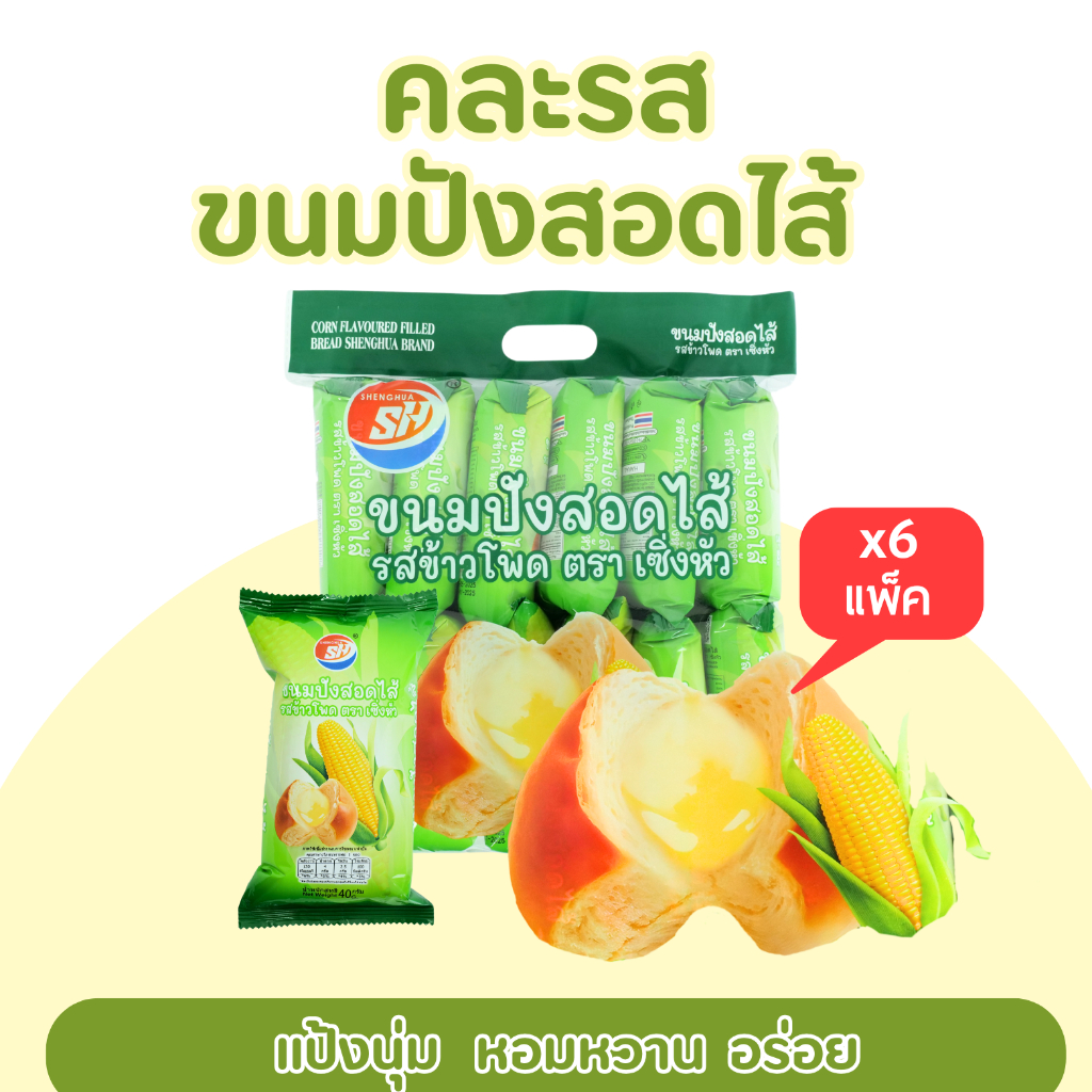 ขนมปัง 2 รสชาติ ข้าวโพดหวาน&ใบเตยหอมแท้ แบรนด์ Shenghua 1ลัง144ชิ้น (SHขนมปังสอดไส้คละใบเตย,ข้าวโพด)