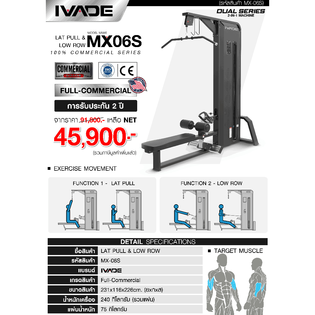 Lat Pull & Low Row MX-06S (Commercial Grade) - เครื่องออกกำลังกาย แบรนด์ IVADE