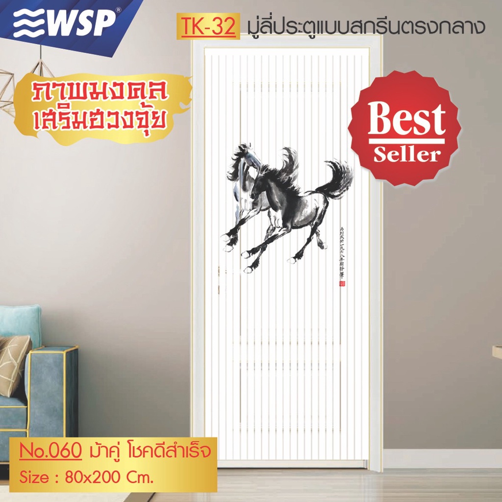 (ขายดีอันดับ 1) WSP มู่ลี่ประตู มู่ลี่ ม่านประตู มู่ลี่ประตูพิมพ์ลายครึ่งผืน 80x200 cm.TK-32/060