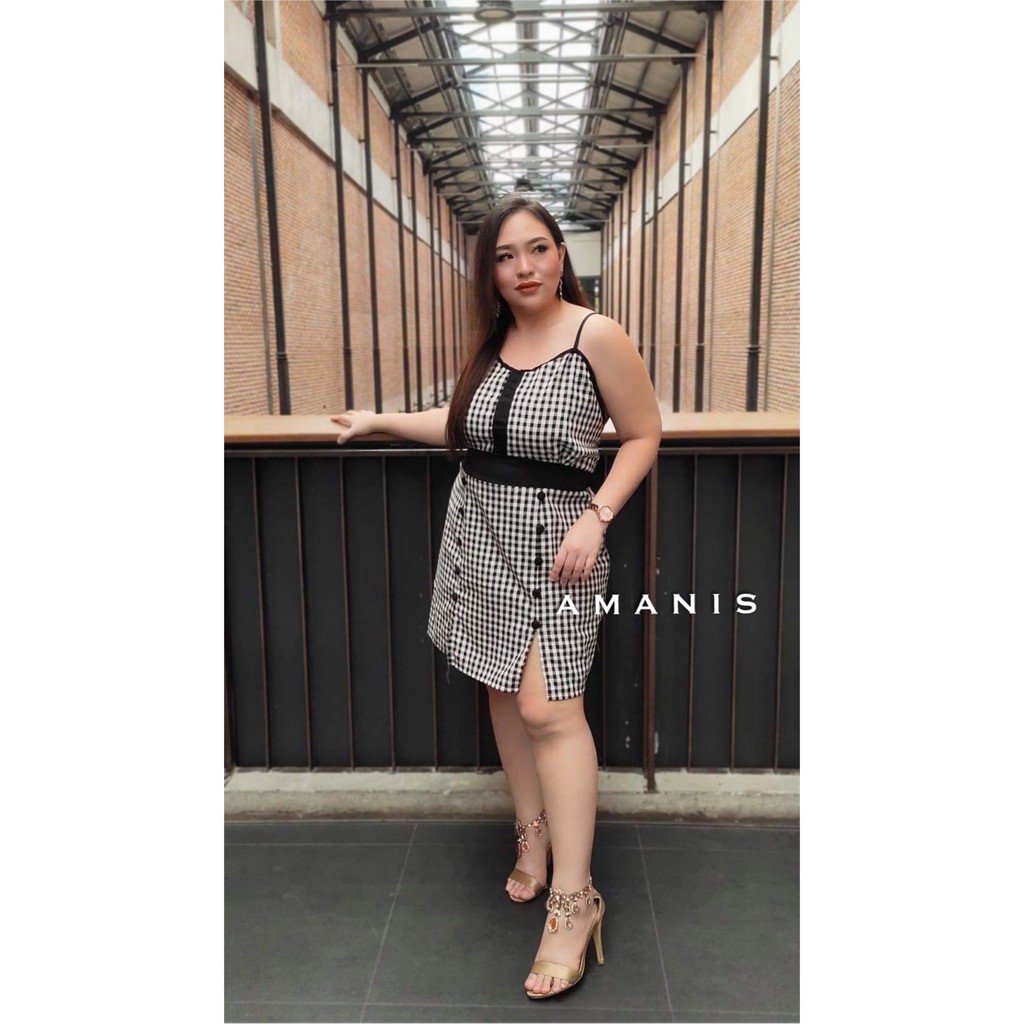 เสื้อผ้าคนอ้วน เดรสสายเดี่ยวลายสก๊อตน่ารักปนเซ็กซี่