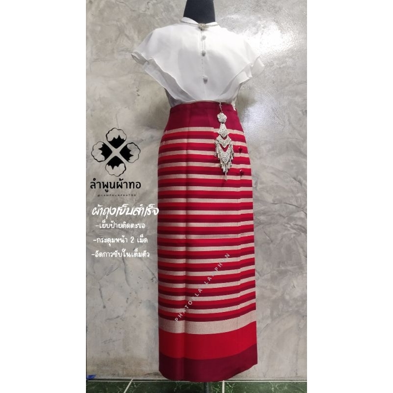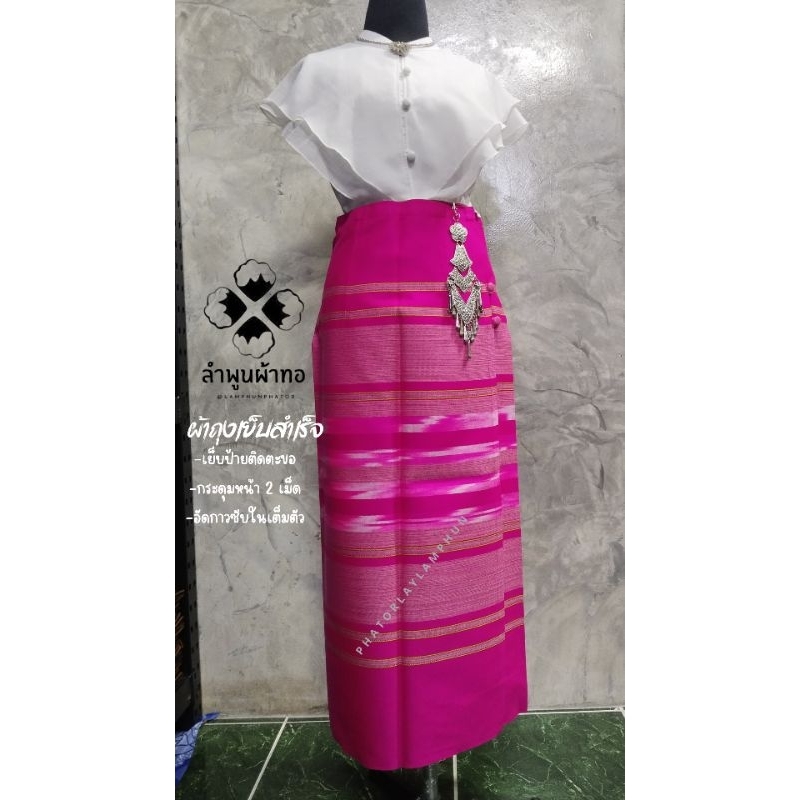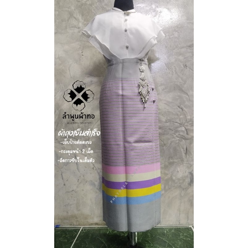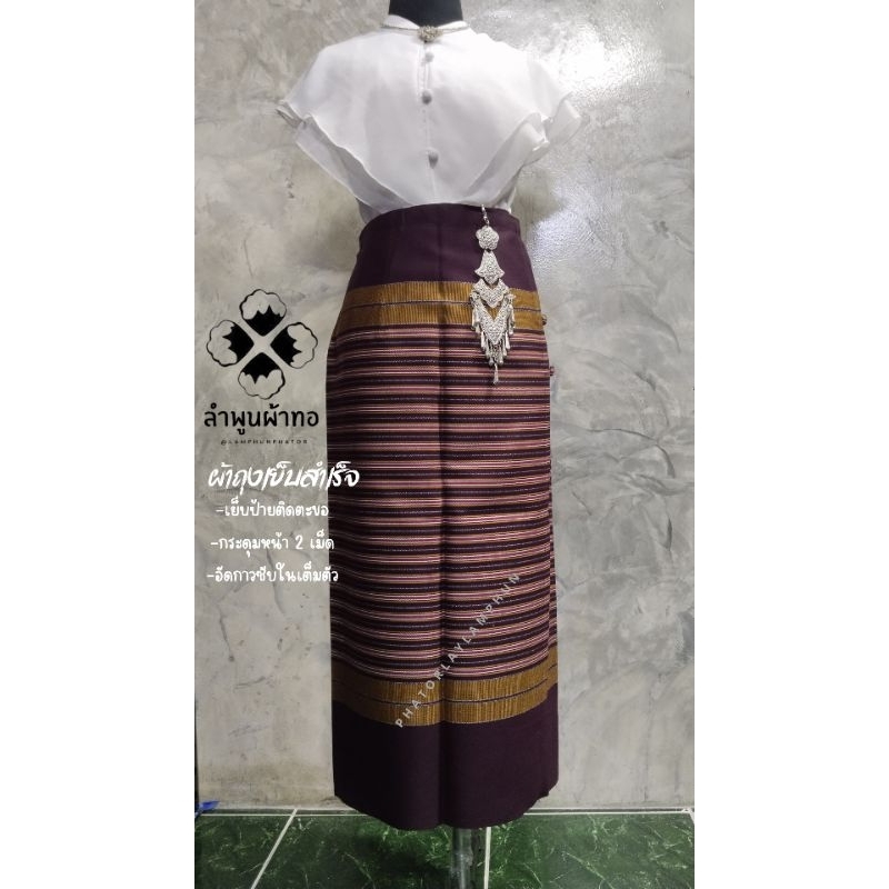 ผ้าถุงเย็บสำเร็จพร้อมนุ่งอัดกาวซับในเต็มตัว เนื้อผ้าทอละเอียด