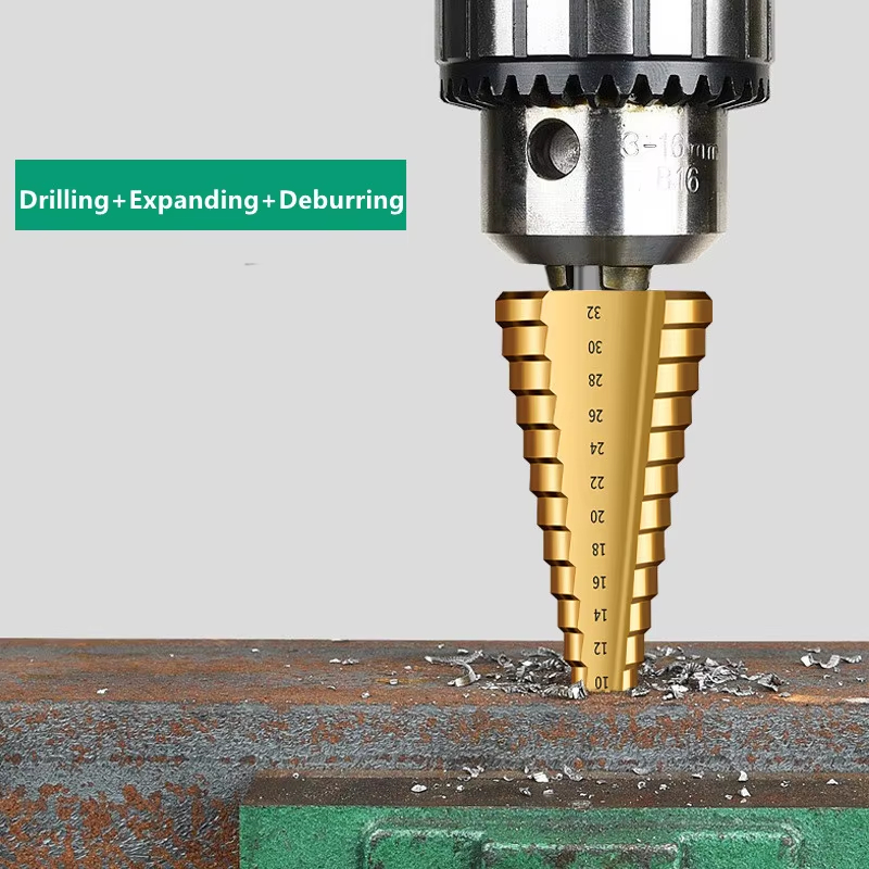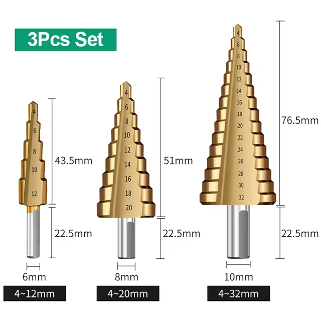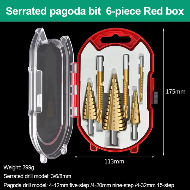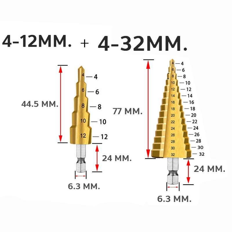 ชุด ดอกสว่าน ทรงเจดีย์ ขั้นบันได 6pcs HSS StepDrill เจาะรู ขยายรู คว้านรู ดอกเล็ก-ใหญ่ ขนาด 4-32 มม. 3/6 ดอกต่อชุด