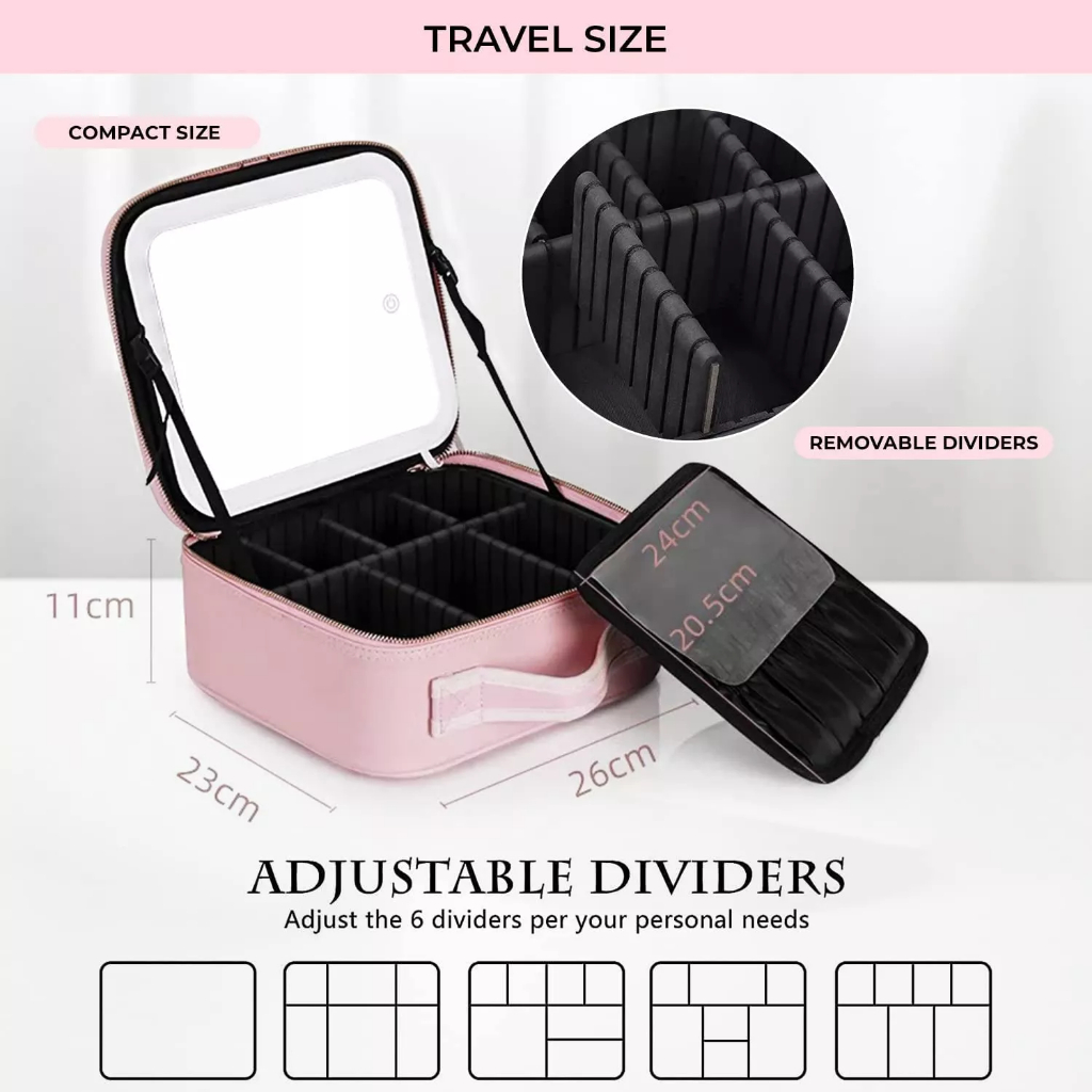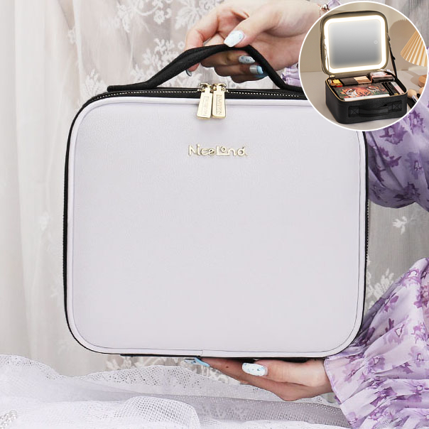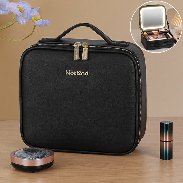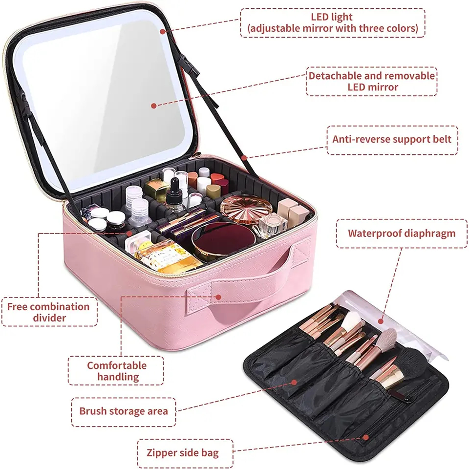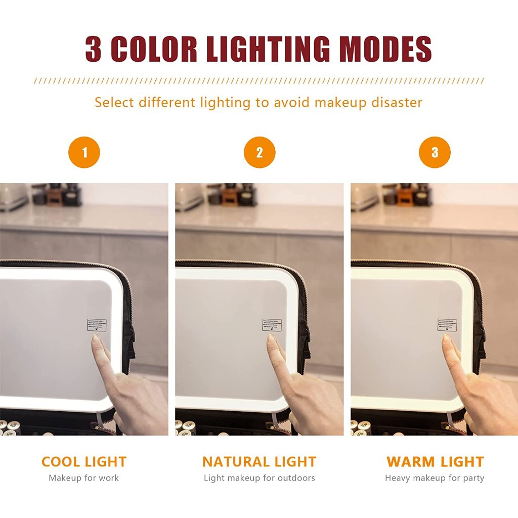 LED Makeup Bag With Mirror กระเป๋าเครื่องสำอางพร้อมกระจกแบบเต็มจอกล่องใส่เครื่องสำอางแบบพกพาสำหรับผู้หญิงกล่องเก็บเครื่อ