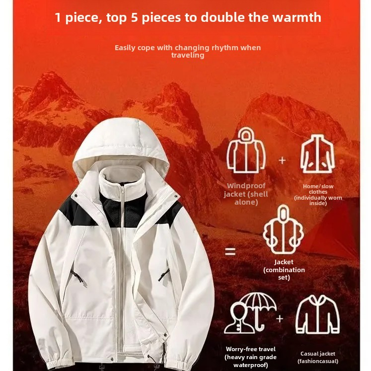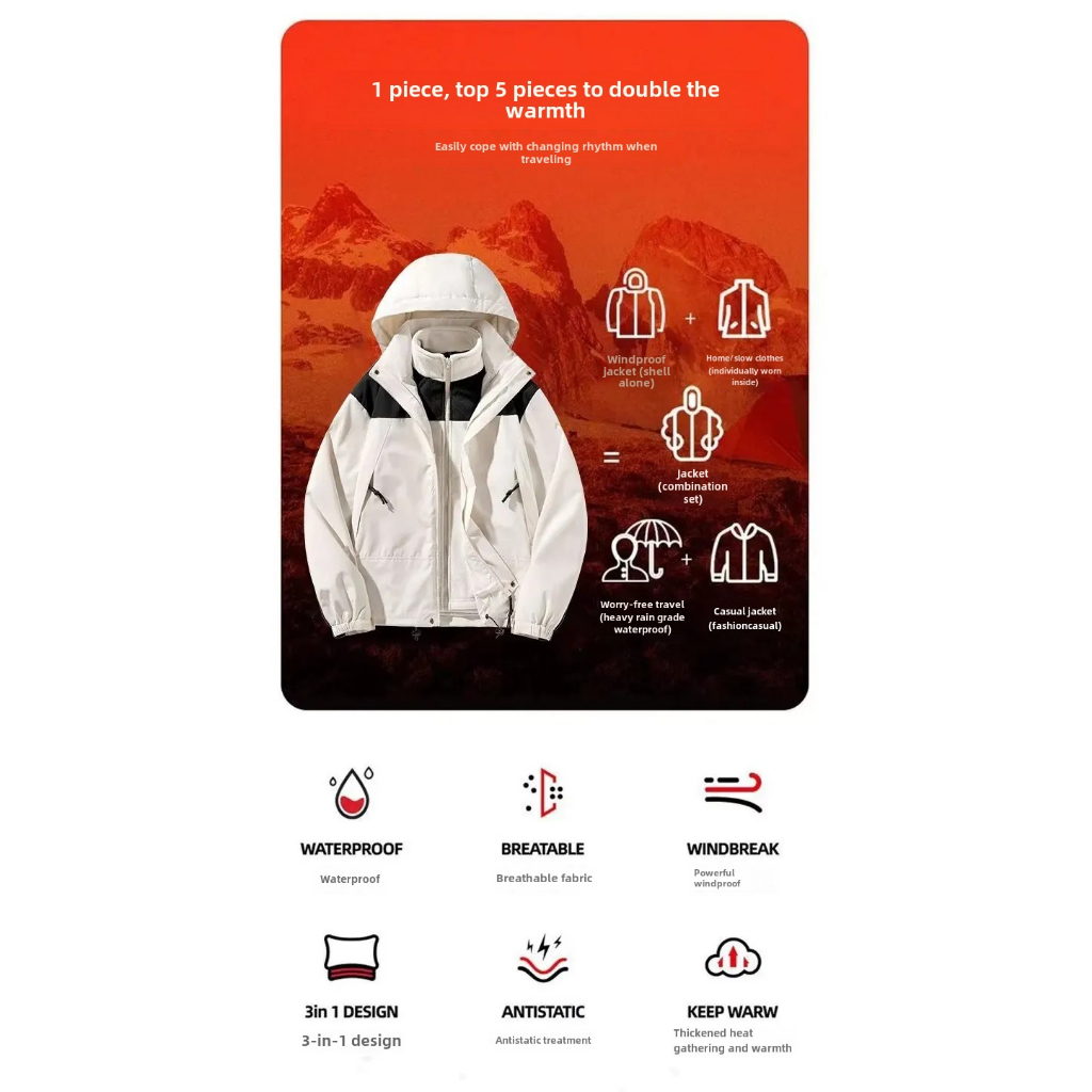 Jeep SPIRIT ฤดูใบไม้ผลิฤดูหนาว Mens เสื้อแจ็คเก็ตกันน้ํา 3 in 1 ชุดสองชิ้นผู้ชายและผู้หญิง Thicken Warm Windbreaker Camping เดินป่า Outwear