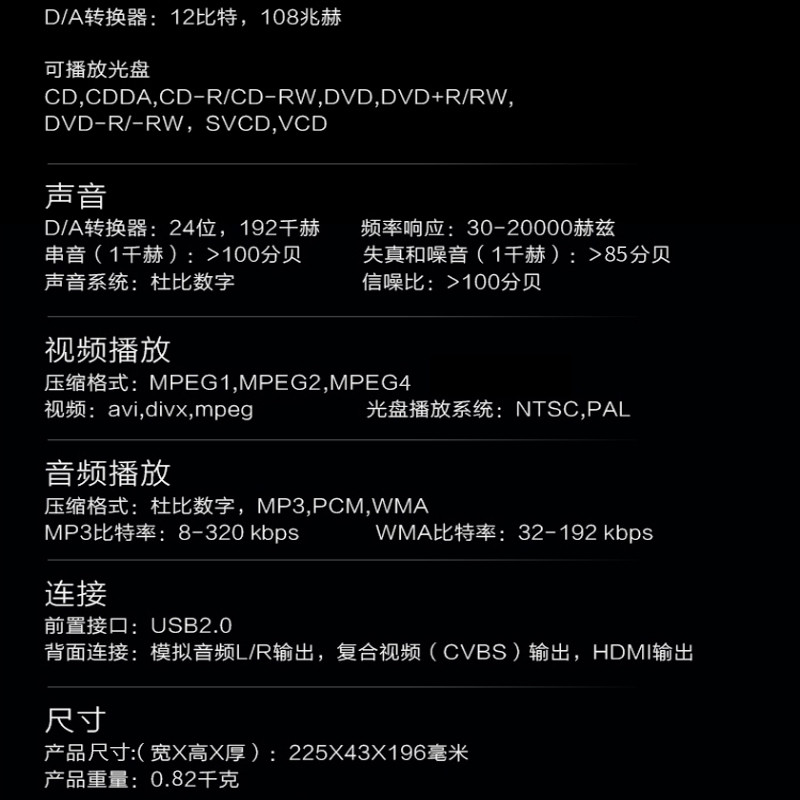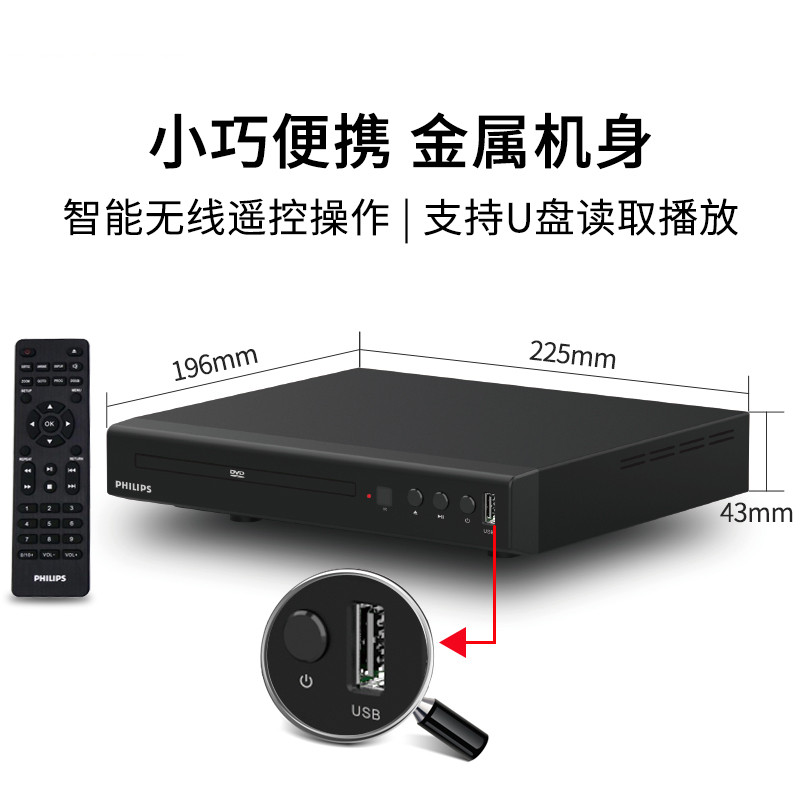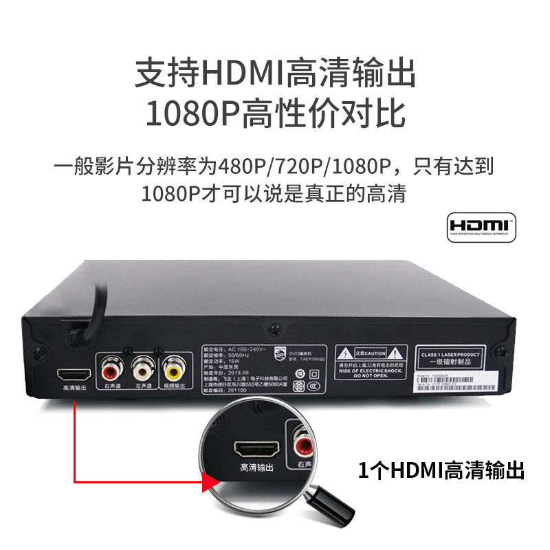 Philips TAEP200 ภูมิภาคฟรีเครื่องเล่น DVD HD HDMI 1080P USB PAL/NTSC พร้อมสาย HDMI