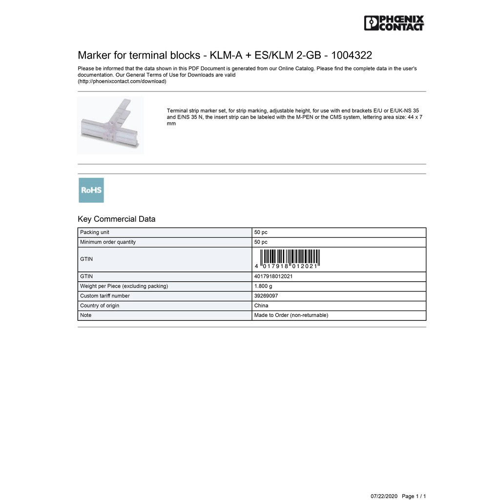 KLM-A + ES/KLM2-GB (10pcs/pack) Group Marker Terminal Block 1004322