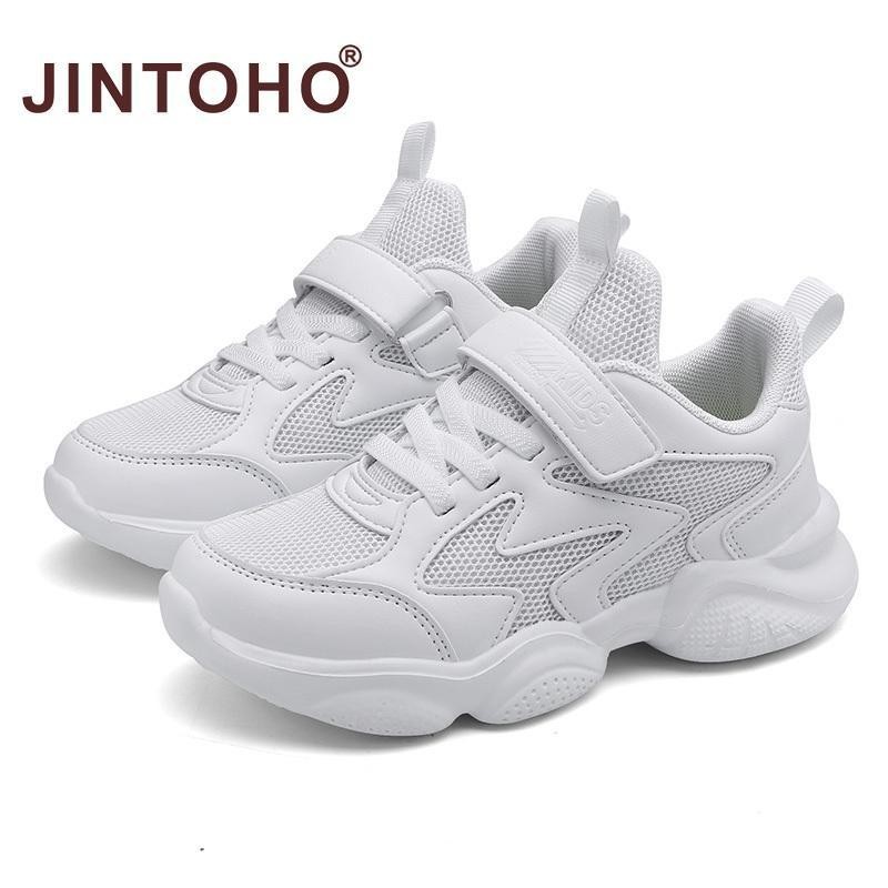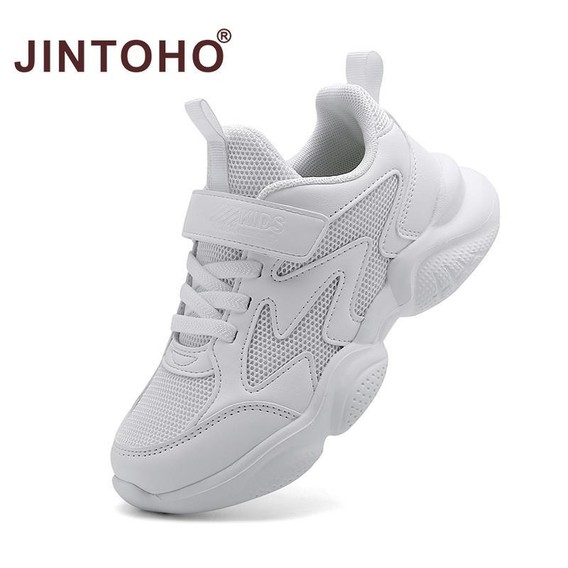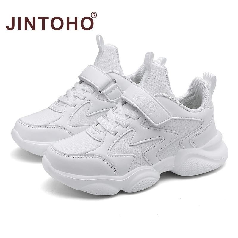 จินโตโฮ หนังสีขาวเด็กรองเท้าสําหรับชายและหญิงแฟชั่นเด็กสบายรองเท้าผ้าใบระบายอากาศลื่นโรงเรียนสบายๆรองเท้ากีฬาสีขาว