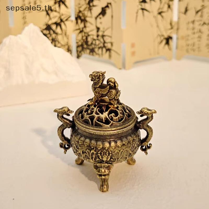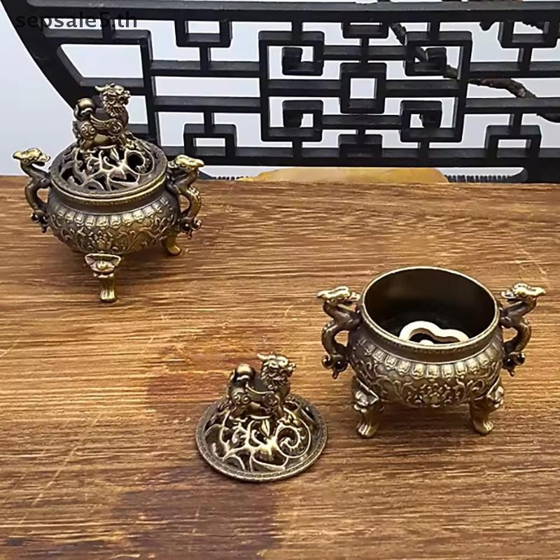[โฮมโปร] วินเทจอัลลอยด์กระถางธูปติดผู้ถือสามขากลวงออกไม้จันทน์กระถางธูปพิธีชงชาตกแต่งบ้าน {ไทย}