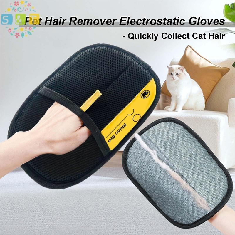 [S&T] Pet Hair Remover ถุงมือไฟฟ้าสถิต, ถุงมือกําจัดขนสัตว์เลี้ยงใหม่ 2025 สําหรับแมวและสุนัข {th}