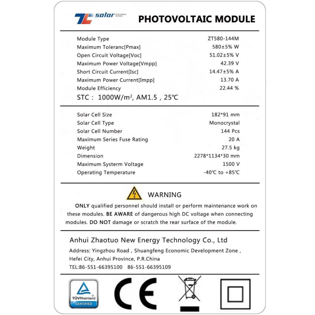 ZT แผงโซล่าเซลล์ 580W MONO มีรับประกัน โมโน 580 วัตต์ แผง พลังงานแสงอาทิตย์ SOLARCELL แผงโซล่า