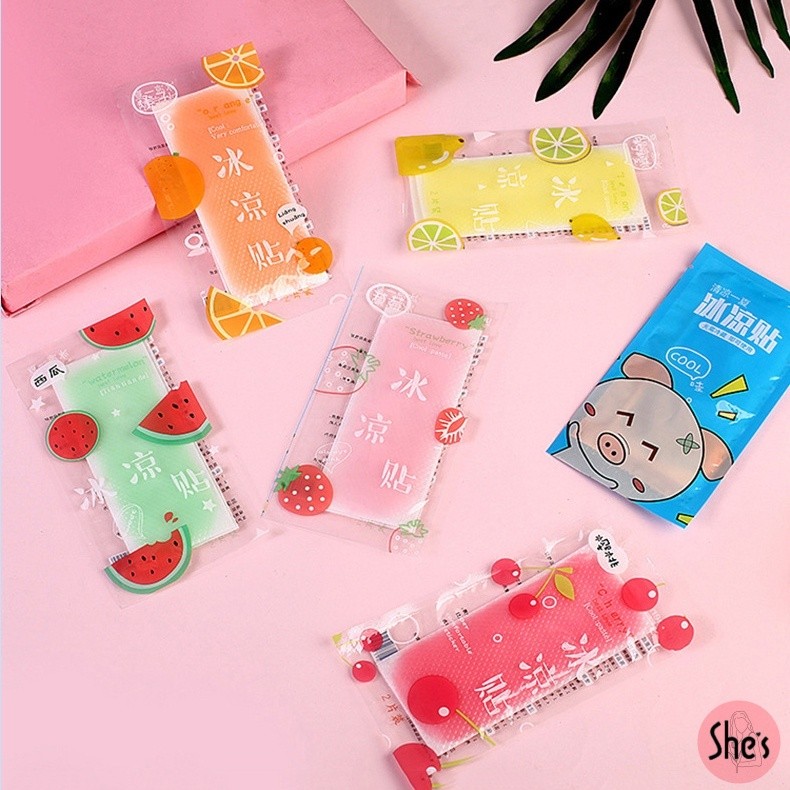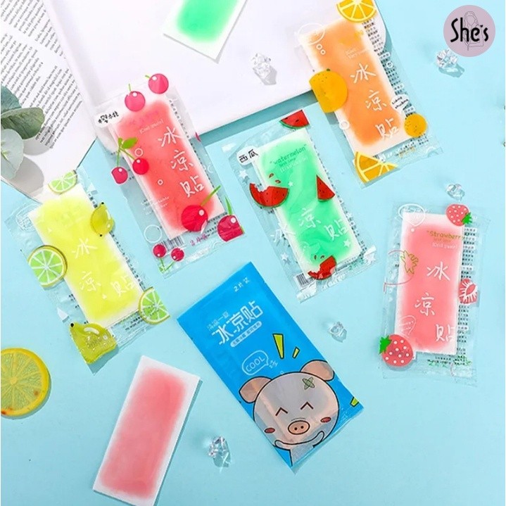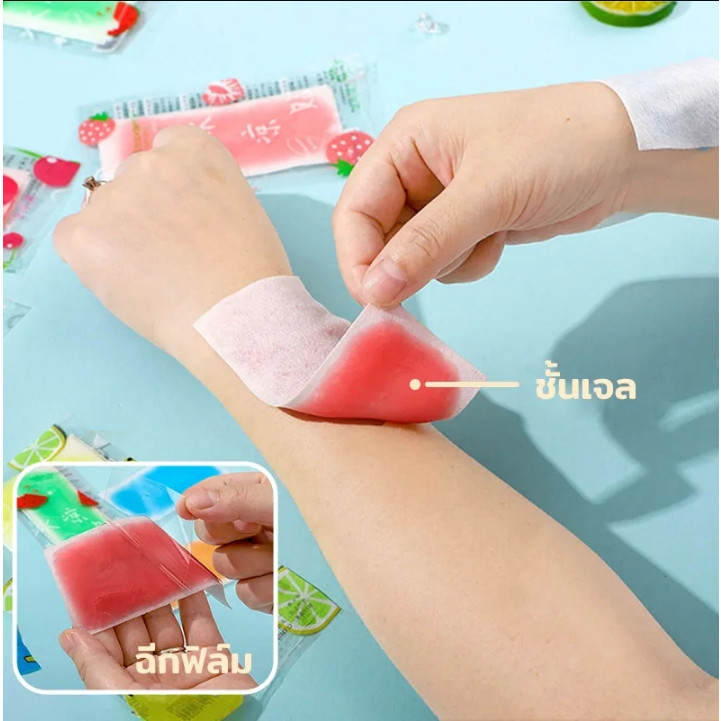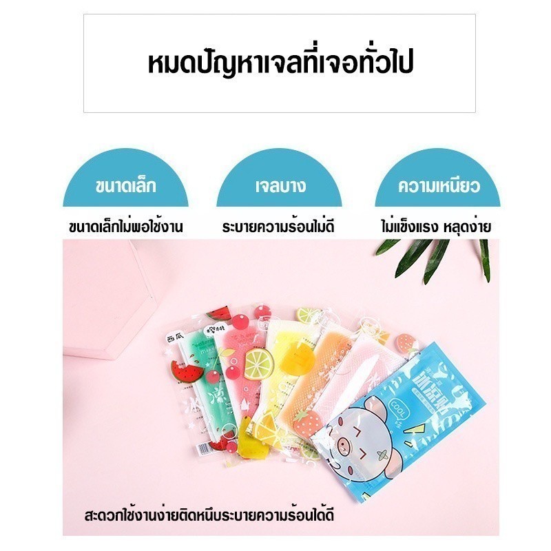 กลิ่นผลไม้ เจลความเย็นลดไข้ แผ่นให้ความเย็น 1 ซอง มี 2 แผ่น มีกลิ่นหอม ช่วยคลายความร้อนจากร่างกาย