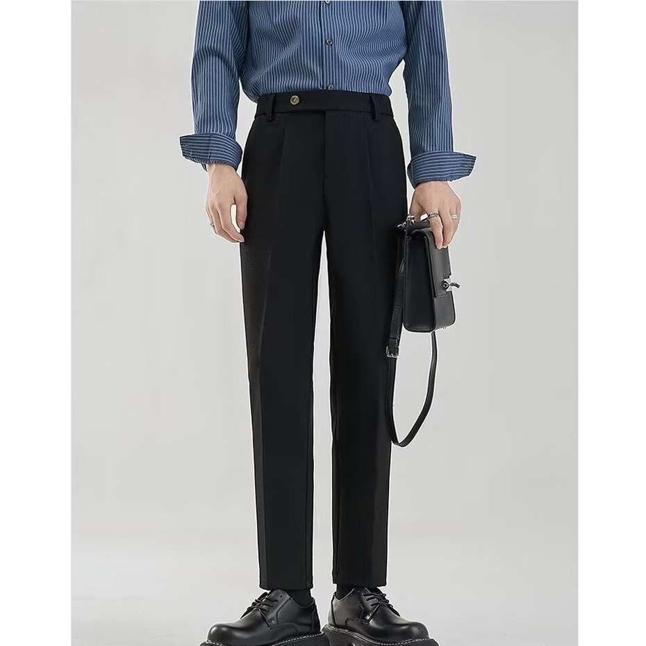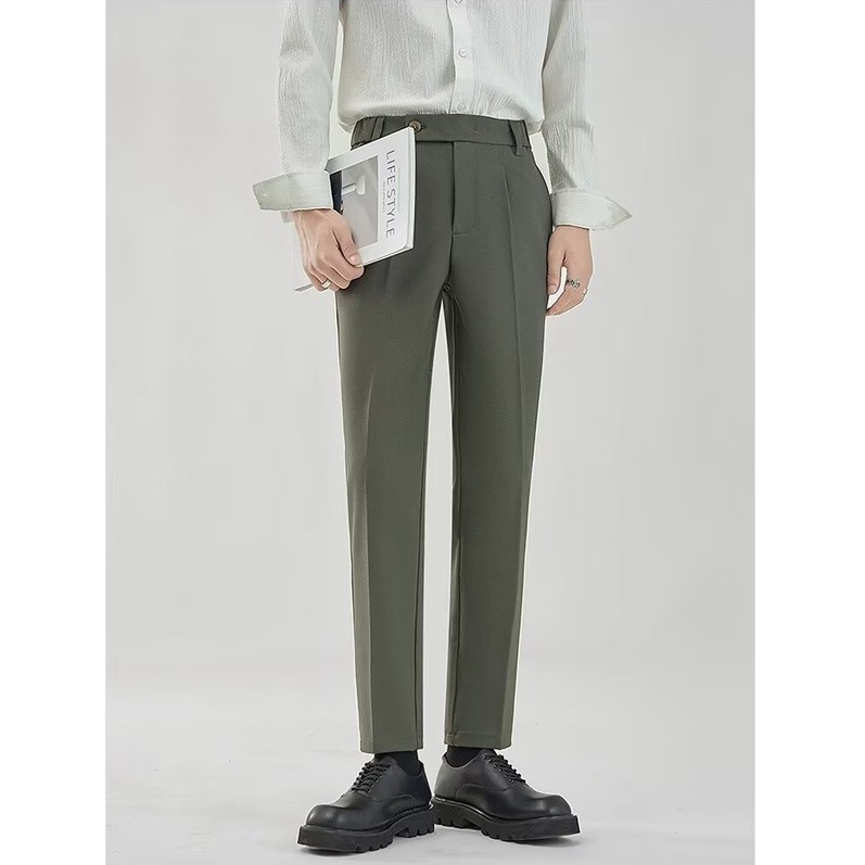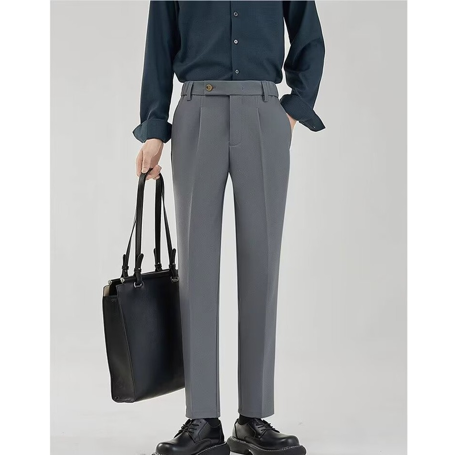 กางเกงลำลองสำหรับผู้ชาย คุณภาพสูง ไม่มีริ้วรอย มีความรู้สึกห้อยลงมา หลวม กระบอกตรง ผ้าเบาใส่สบาย 28-38