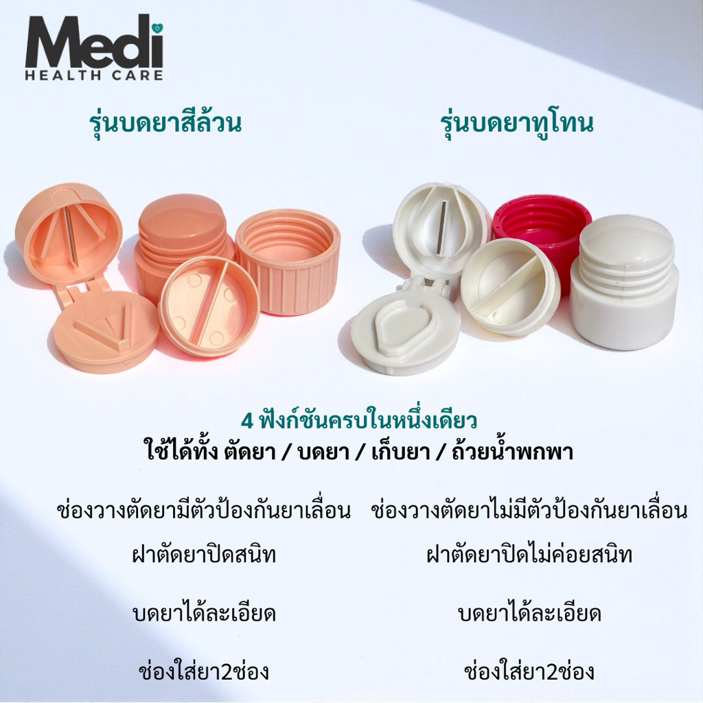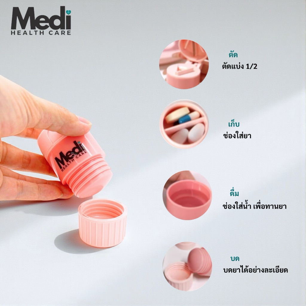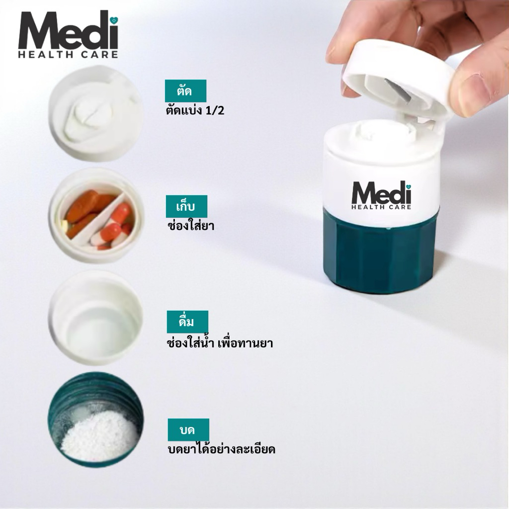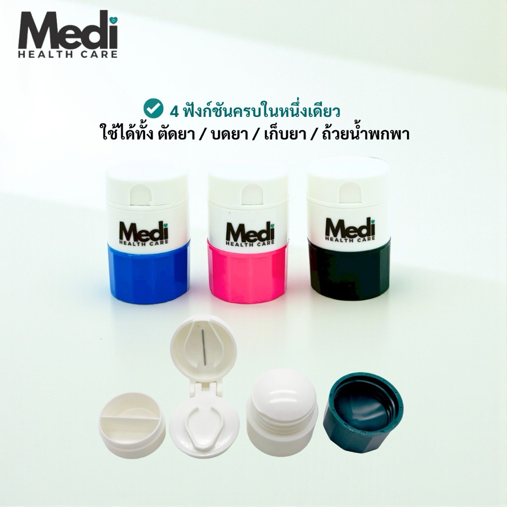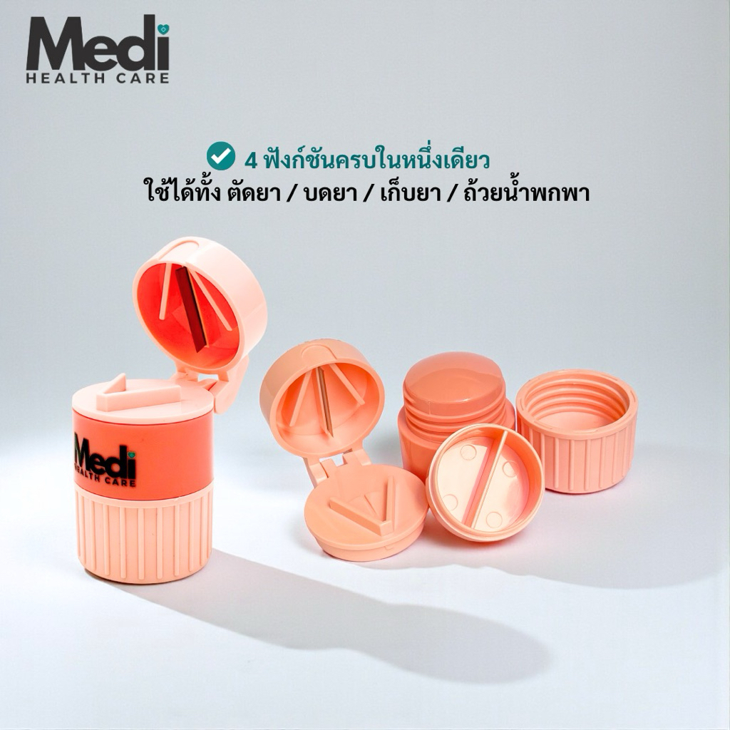 Medi รวม 4 in 1 ตัดยา / เก็บยา / ใส่น้ำ / บดยา “ครบ จบ ในหนึ่งเดียว” ใช้งานง่าย พกพาสะดวก