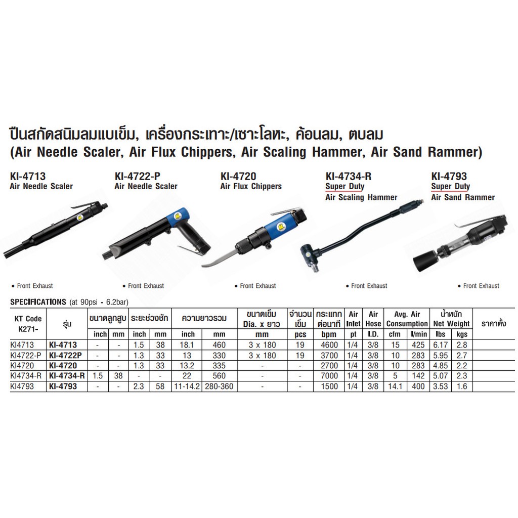 เครื่องสกัดสนิมลมแบบเข็ม และแบบกระเทาะ เซาะโลหะ สำหรับงานหนัก ยี่ห้อ KUANI TOKU จากไต้หวัน