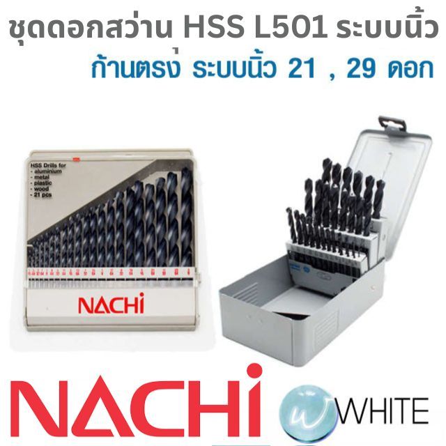 ชุดดอกสว่าน HSS L501 ระบบนิ้ว 21 ดอก 29 ดอก ยี่ห้อ NACHI