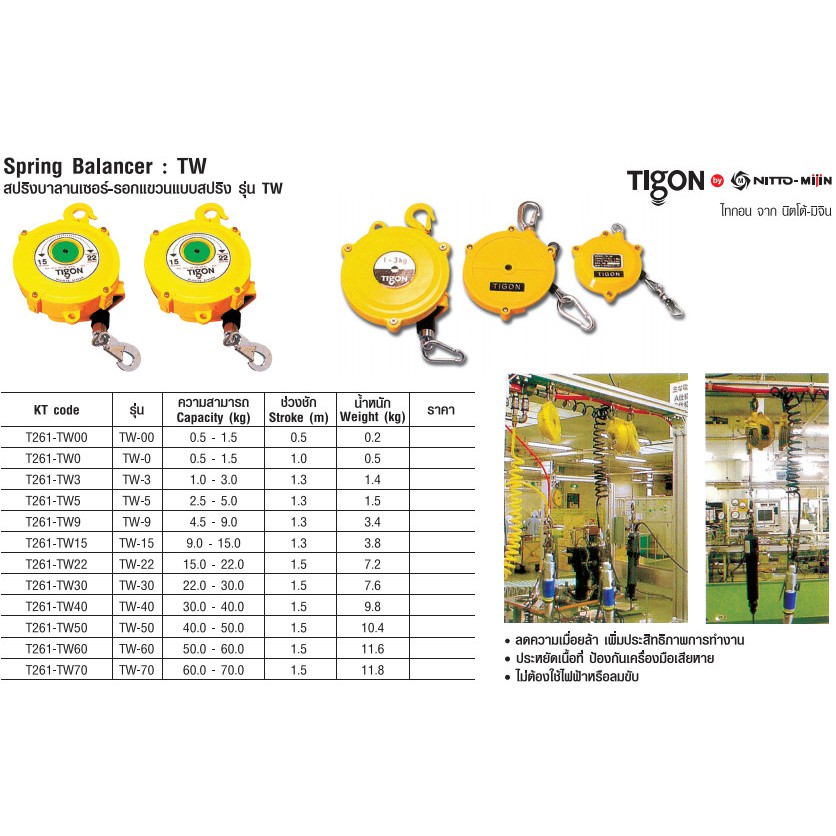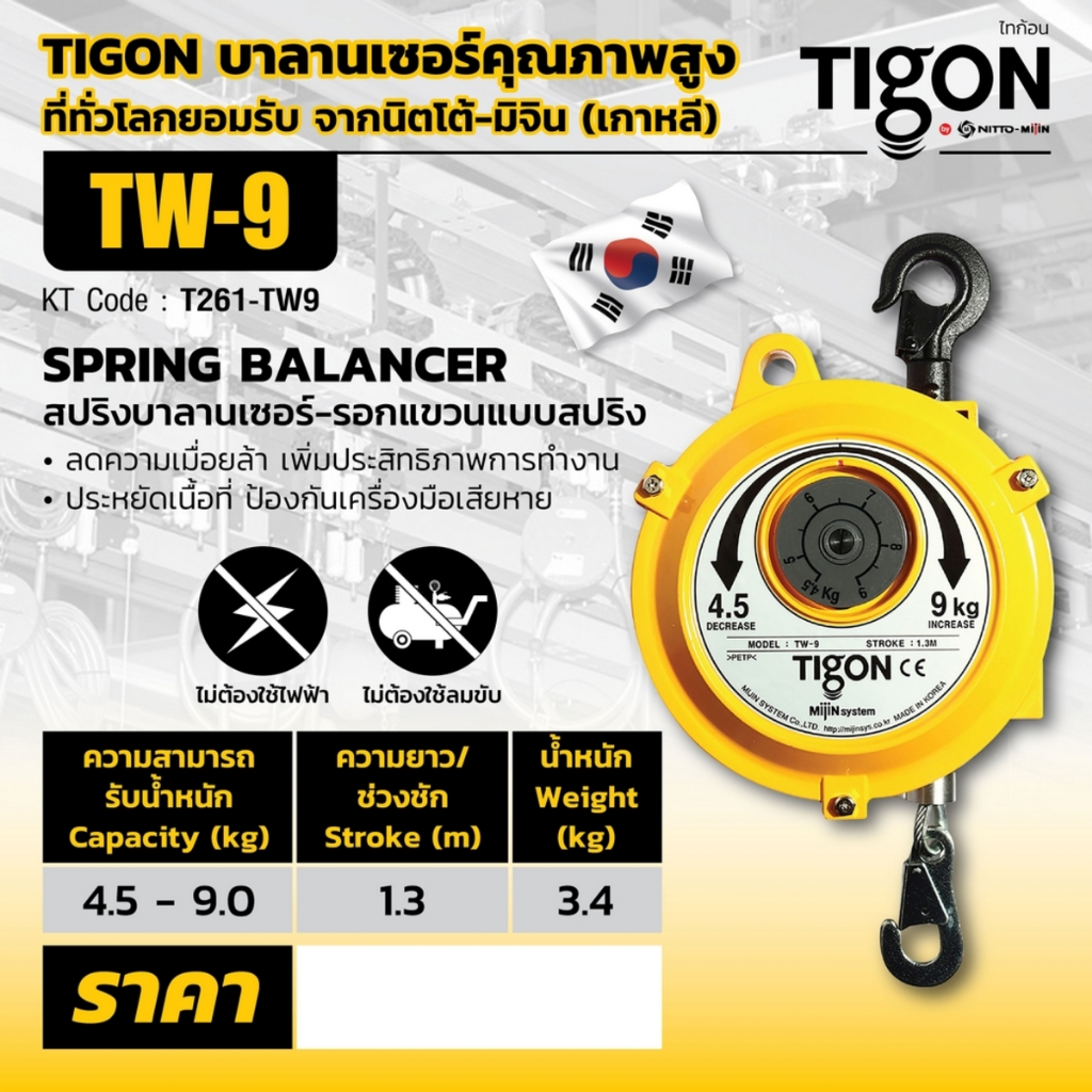 รอกแขวนแบบสปริง 4.5 - 70 KG Spring Balancer ยี่ห้อ TIGON จากเกาหลี