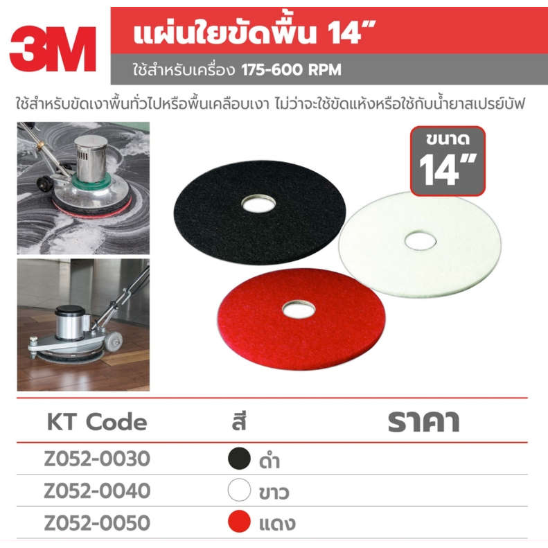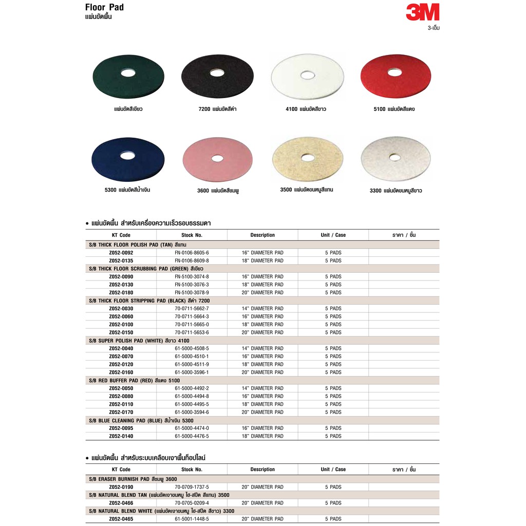 อะไหล่ แผ่นขัดพื้น กลม 14 - 20 นิ้ว สำหรับเครื่องขัดพื้นความเร็วรอบธรรมดา ยี่ห้อ 3M จาก USA