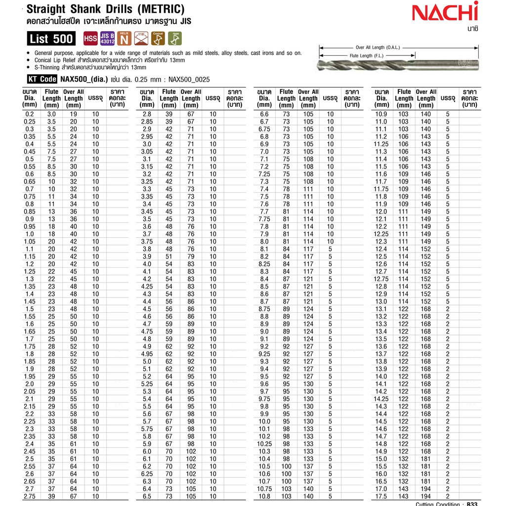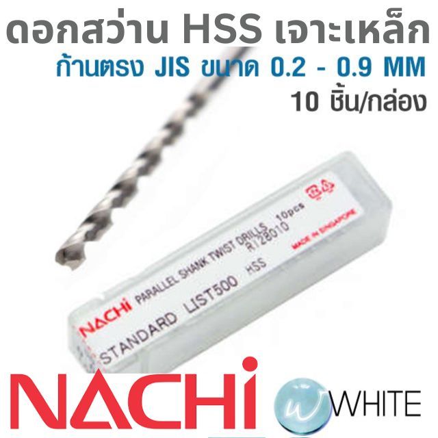 ดอกสว่าน HSS เจาะเหล็ก ก้านตรง JIS ขนาด 0.2 - 0.9 MM (10PCS/1PAC) ยี่ห้อ NACHI
