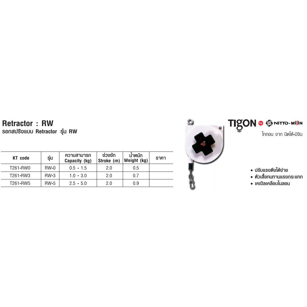 รอกสปริงแบบ RETRACTOR 0.5 - 5.0 KG RW Series ยี่ห้อ TIGON