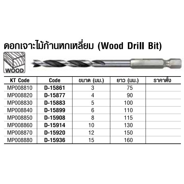 ดอกสว่านเจาะไม้ ก้านหกเหลี่ยม ขนาด 3 - 15 มม. ยี่ห้อ MAKITA