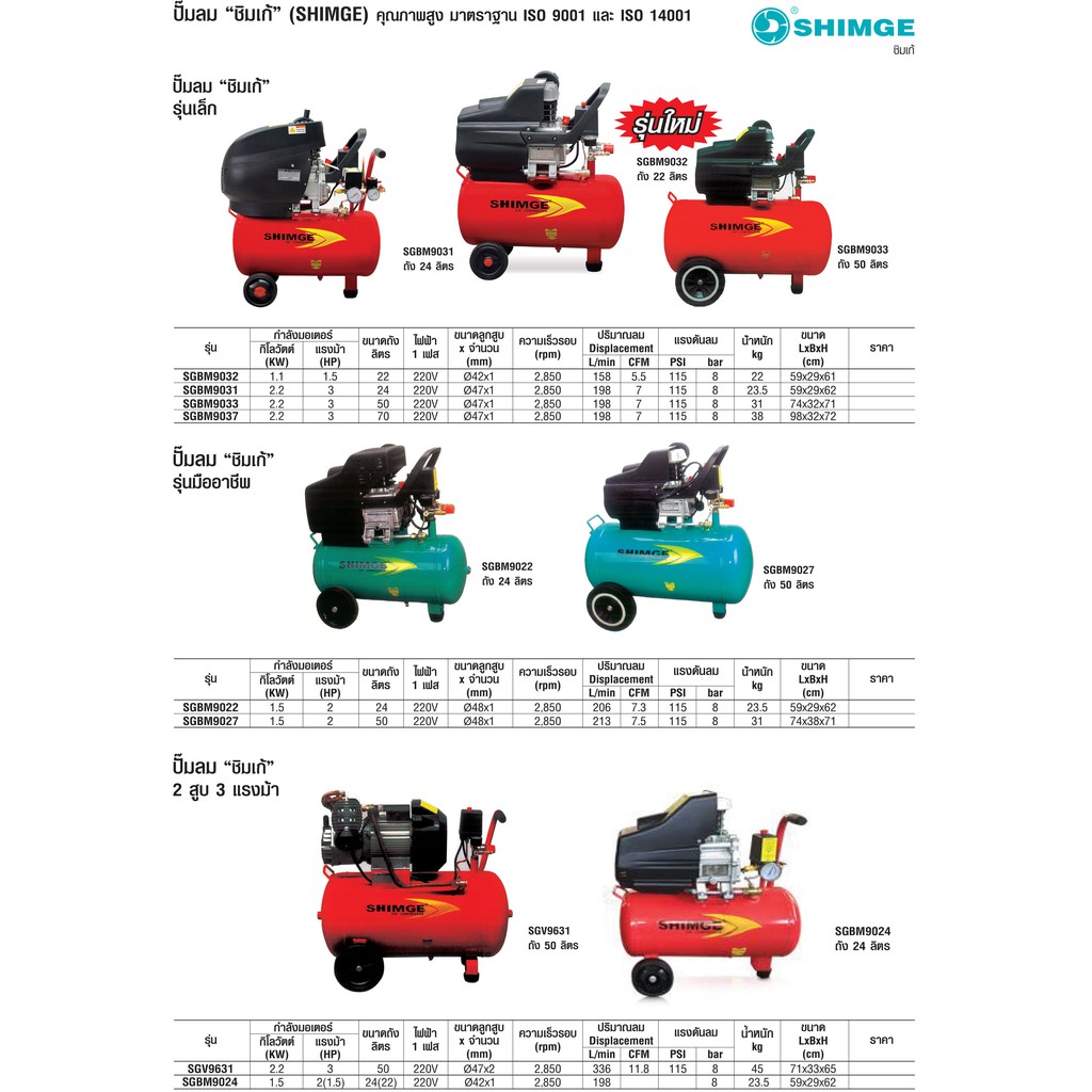 ปั้มลมโรตารี่ รุ่นเล็ก และแบบขับตรง 1.5 - 3 HP ยี่ห้อ SHIMGE POLO