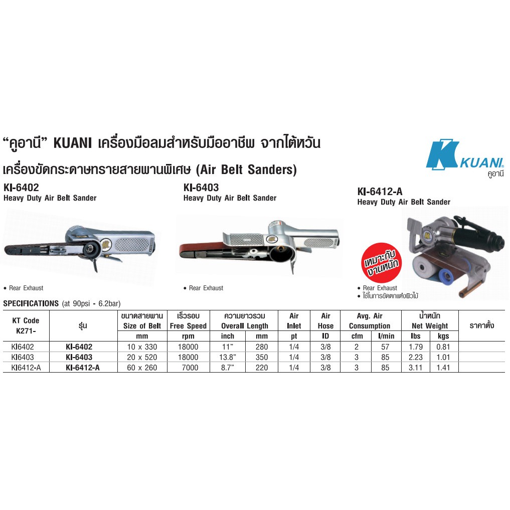 เครื่องขัดกระดาษทรายสายพานพิเศษลม ขนาด 10x330 , 20x520 , 60x260 mm งานหนัก ยี่ห้อ KUANI