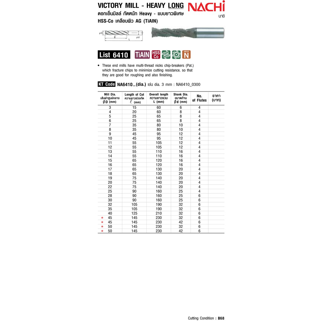 ดอก Victory Mill กัดหนัก ยาวพิเศษ ขนาด 3 - 25 MM เคลือบผิว TiAlN List 6410 ยี่ห้อ NACHI