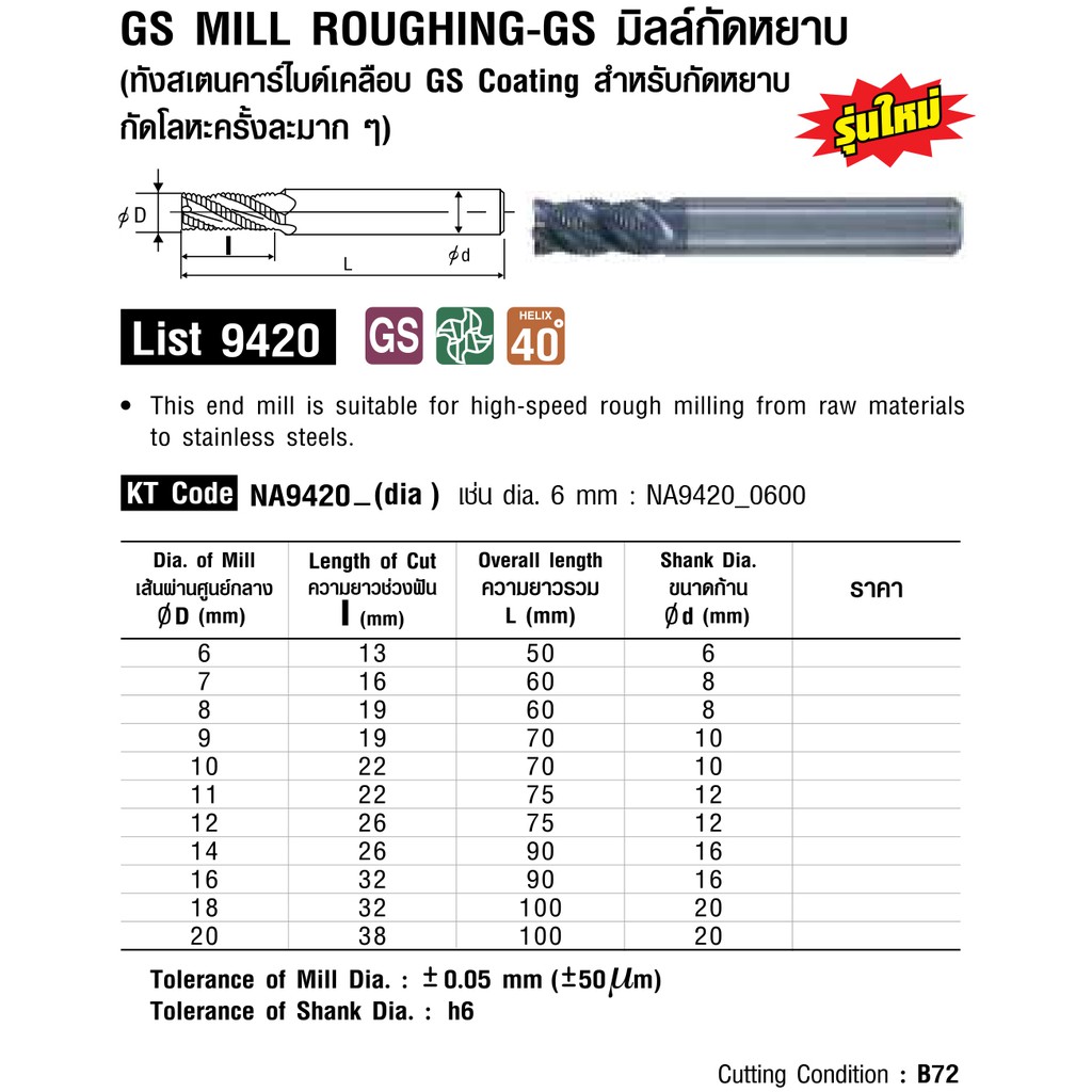 ดอกเอ็นมิลล์ GS Mill กัดหยาบ ขนาด 6 - 20 MM กัดโลหะครั้งละมากๆ List 9420 ยี่ห้อ NACHI