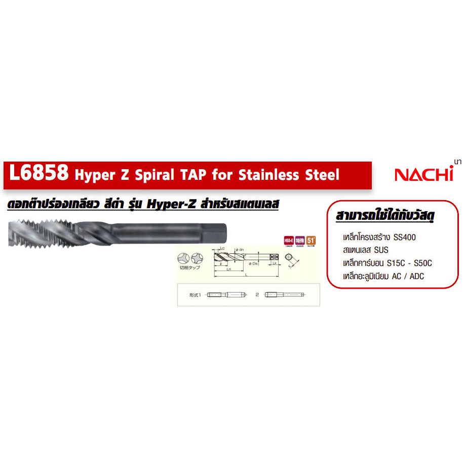 ดอกต๊าปร่องเกลียวสีดำ Hyper Z ขนาด M3 - M12 สำหรับสแตนเลส List 6858 L6850 ยี่ห้อ NACHI