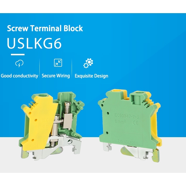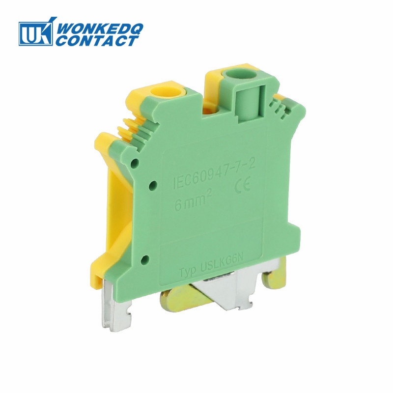 Uslkg6n Ground Din Rail Terminal Block สกรู 6mm2 สายสีเหลือง/สีเขียว USLKG 6N