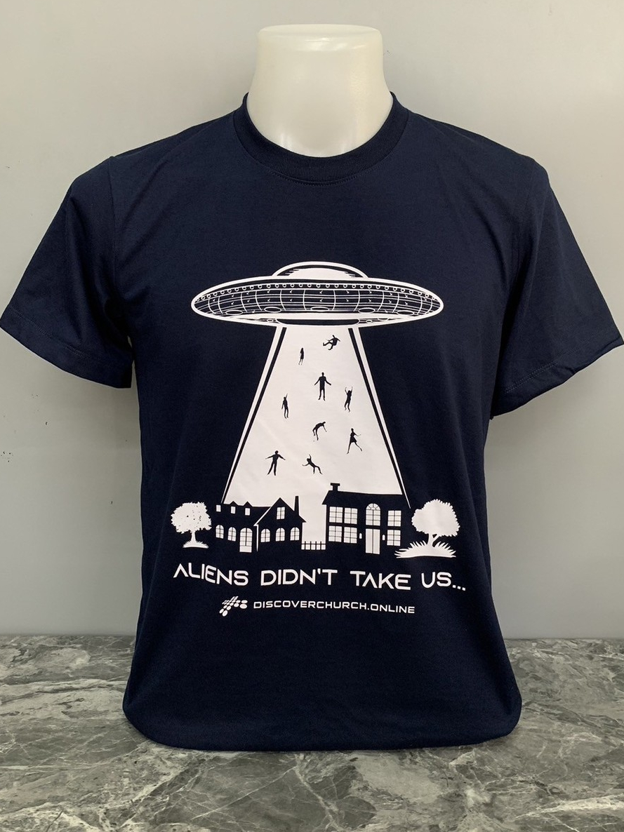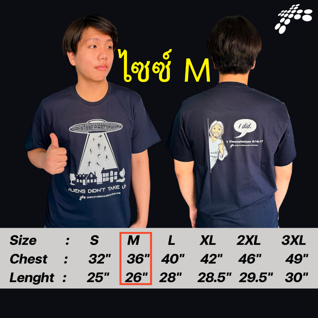 เสื้อยืด UFO เอเลี่ยนไม่ได้รับเราขึ้นไป แต่พระเยซูเป็นผู้ที่จะมารับเราขึ้นไป สีกรมท่า