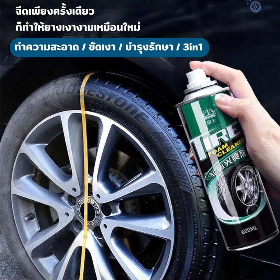 สเปรย์โฟมล้างยาง โฟมเคลือบล้อยางขัดเงา โฟมเคลือบยางดำ ทำความสะอาดล้อ 600ml.
