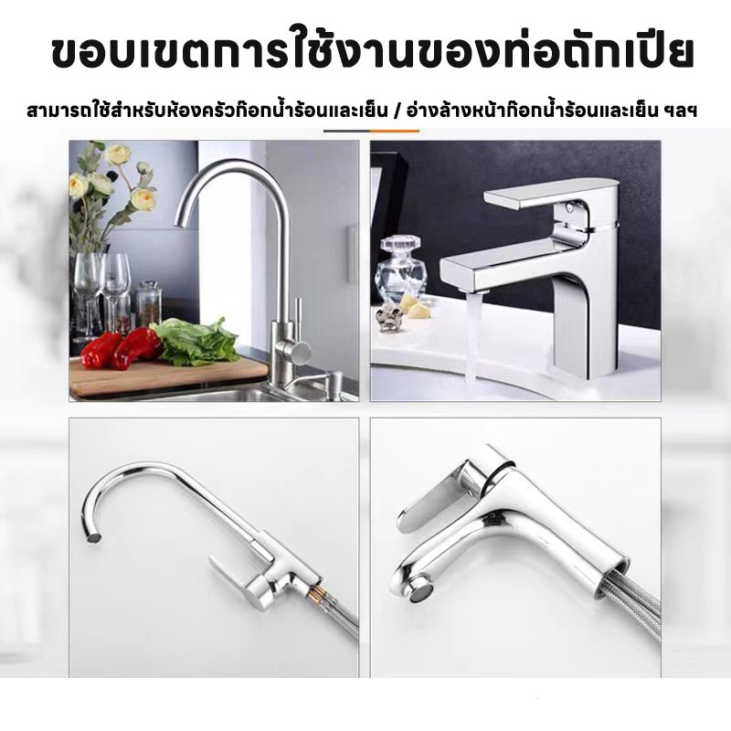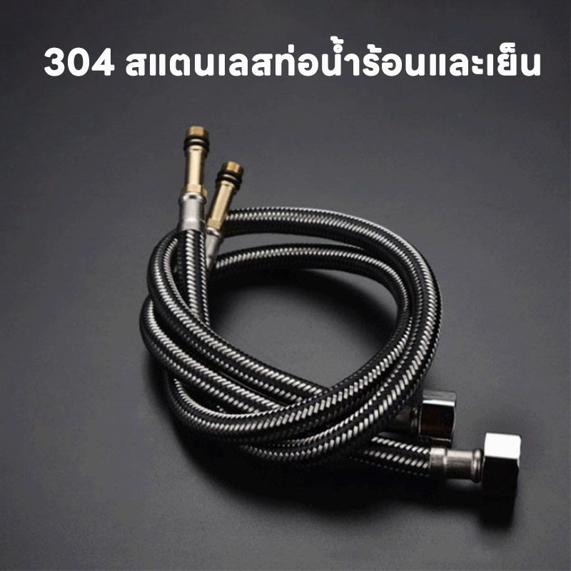 สายน้ำดีก๊อกผสม น้ำร้อน-เย็น สายน้ำดี 304 สแตนเลสถักปลายท่อโลหะอ่างล 2 หุน สแตนเลสถัก ก๊อกน้ำเย็นและร้อนท่อน้ำเข้า 4 จุด
